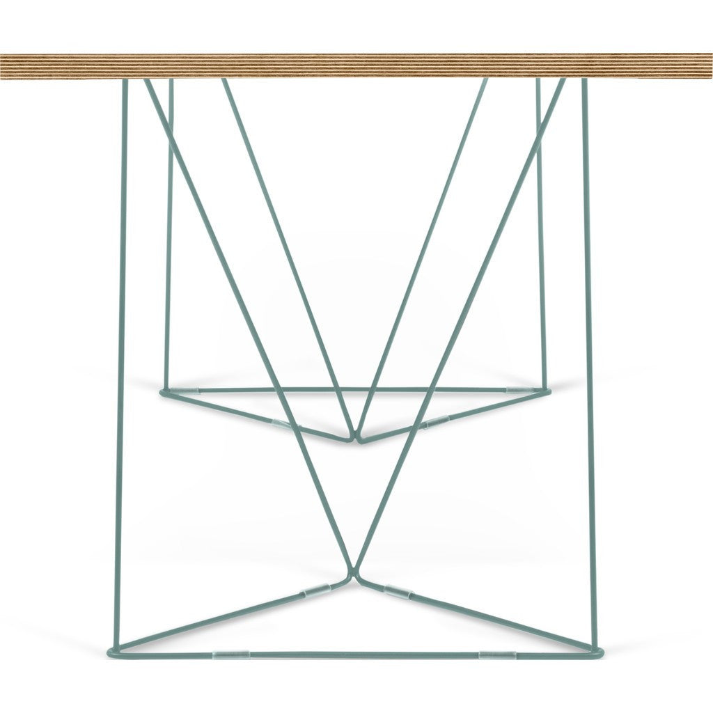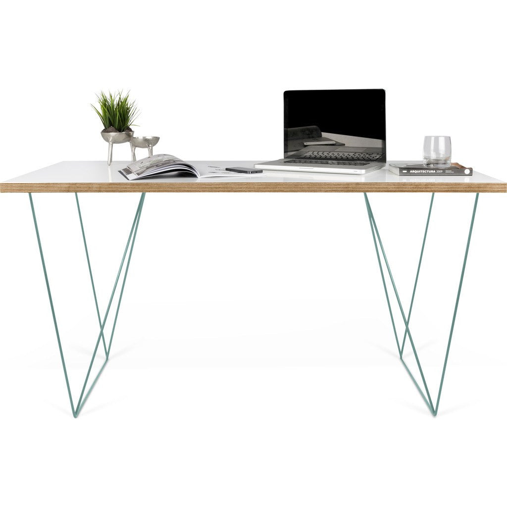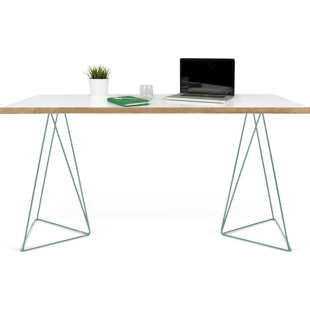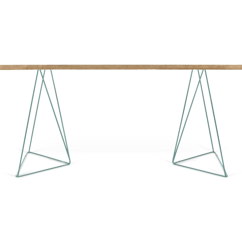 The Flow Desk from TemaHome features an original and distinctive design that's perfect for your home office. ��The white and plywood��desktop paired with sea green��lacquered steel trestles offers a modern and minimalist design that sure to complement any space. ��Whether you're working on a professional or personal project, let productivity flow with your new work desk.