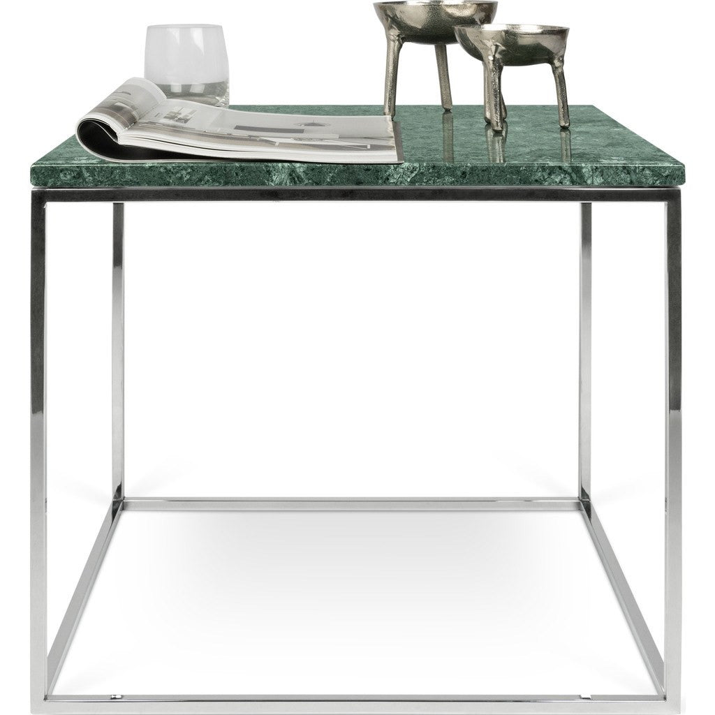 TemaHome's Gleam Marble Side��Table features a sleek, minimalist design. ��A green��marble tabletop paired with chrome legs provide for a simple, contemporary aesthetic. ��This geometric side table is sure to complement any space. ��Pair it with the matching coffee��table to really pull the room together. ��