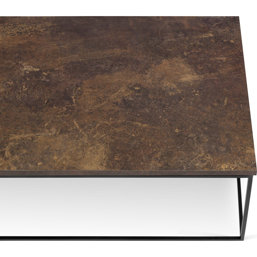 TemaHome's Gleam Coffee Table features a sleek, minimalist design. ��A rusty-finished��tabletop paired with black lacquered steel��legs provide for a simple, contemporary aesthetic. ��This geometric coffee��table is sure to complement any space. ��Pair it with the matching side��table to really pull the room together. ��