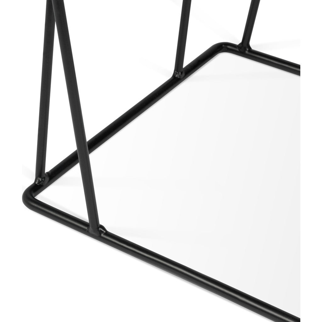 The Helix Marble Side Table features a unique design with a brown��marble tabletop and a metallic base constructed from crossing metal rods. ��The combination of marble and metal provides for a strikingly modern aesthetic that is sure to complement any space.��