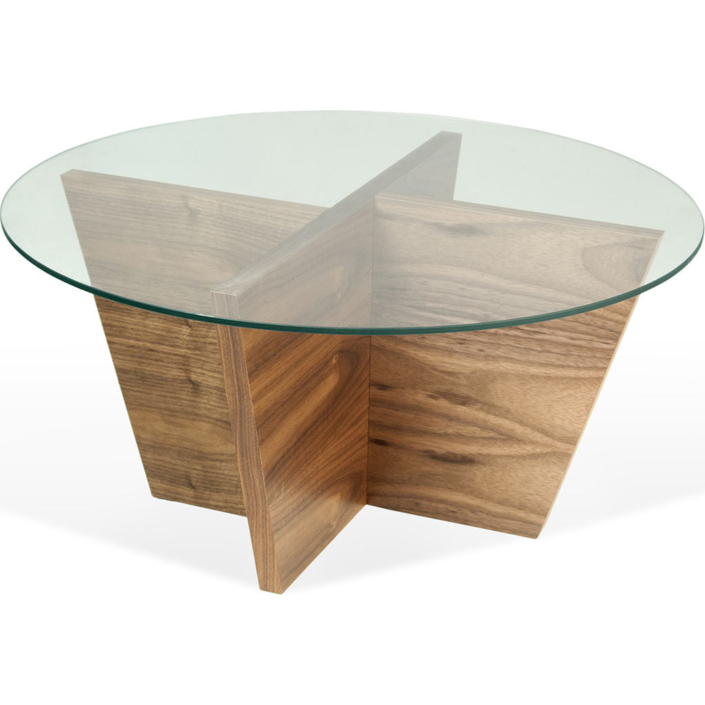 Drawing the inspiration for its unique configuration from the natural beauty of tree branches, the Oliva Side��Table from TemaHome boasts a striking angular structure. The Oliva's��circular glass table top highlights the diagonal elements of this side��table. Finished with a walnut veneer and two small shelfs, the Oliva��Side��Table is a remarkable blend of elegance and functionality.��