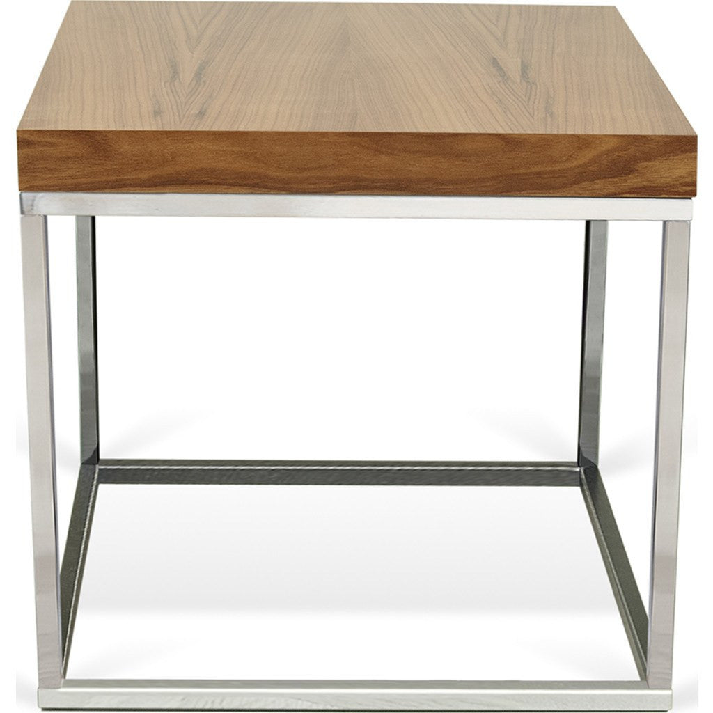 The Prairie Collection from TemaHome offers simple, sophisticated, and versatile accent and coffee tables. ��This geometrically designed end table features a walnut tabletop paired with chrome��metal legs for a refined look that is sure to complement any living room. ��Pair it with a second end table or matching coffee table to really pull the room together.��
