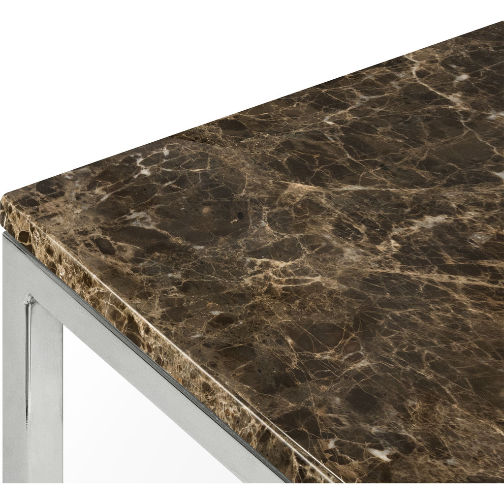 The Prairie Collection from TemaHome offers simple, sophisticated, and versatile accent and coffee tables. This geometrically designed coffee��table features a��brown marble��tabletop paired with��vibrant chrome��legs for a refined look that exudes tasteful minimalism. Pair��the Prairie Table with a matching accent��table or two to add an elegant, modern aesthetic to your home.��