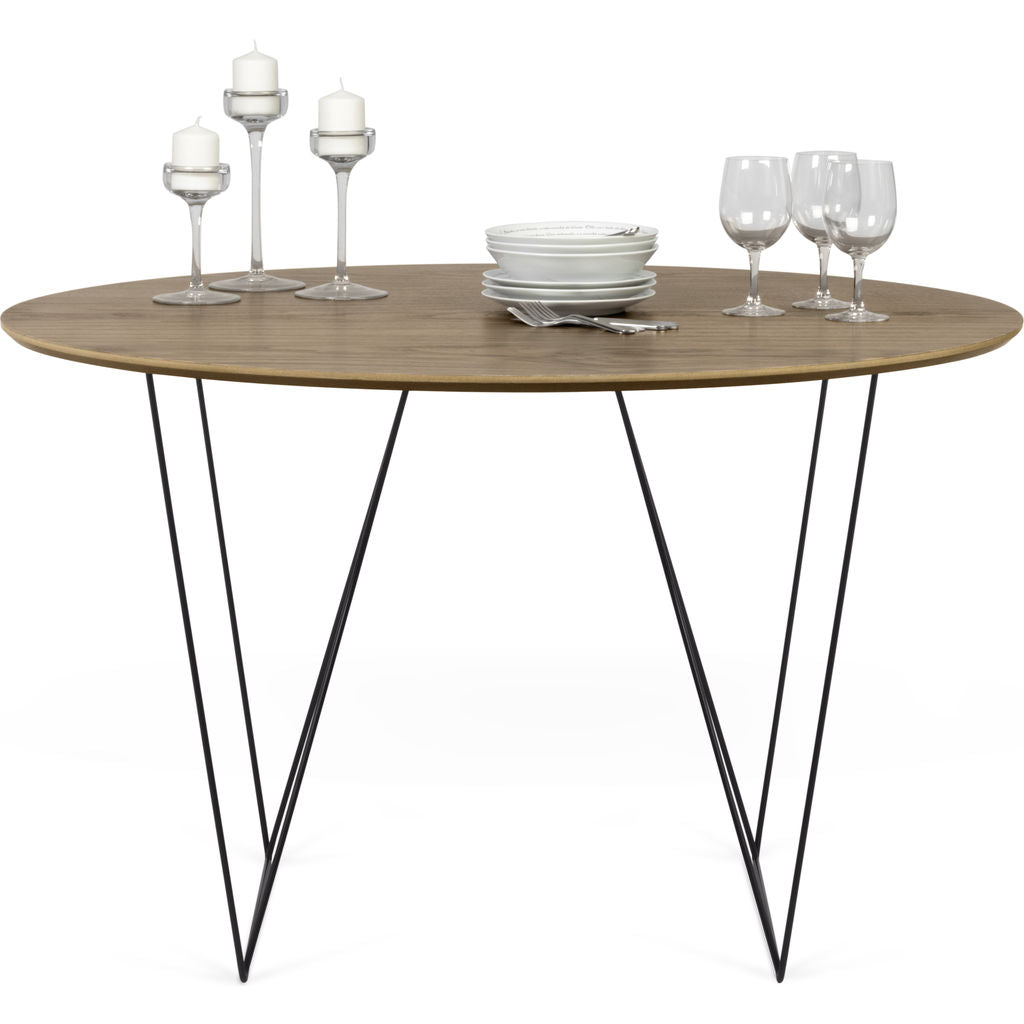 Ideal for enjoying delicious meals or discussing inspired ideas, the Row 120 Dining Table from Temahome is crafted with family and friends in mind.��By combining��a rich��walnut table top and black��steel trestles, TemaHome's world renown designers reimagine the traditional round dinning table with a sleek, modern aesthetic. Boasting a generous 120 cm (47") diameter, the Row Trestle Leg Dining Table saves on floor space, while offering maximum surface area for plates, books,��board games and more!