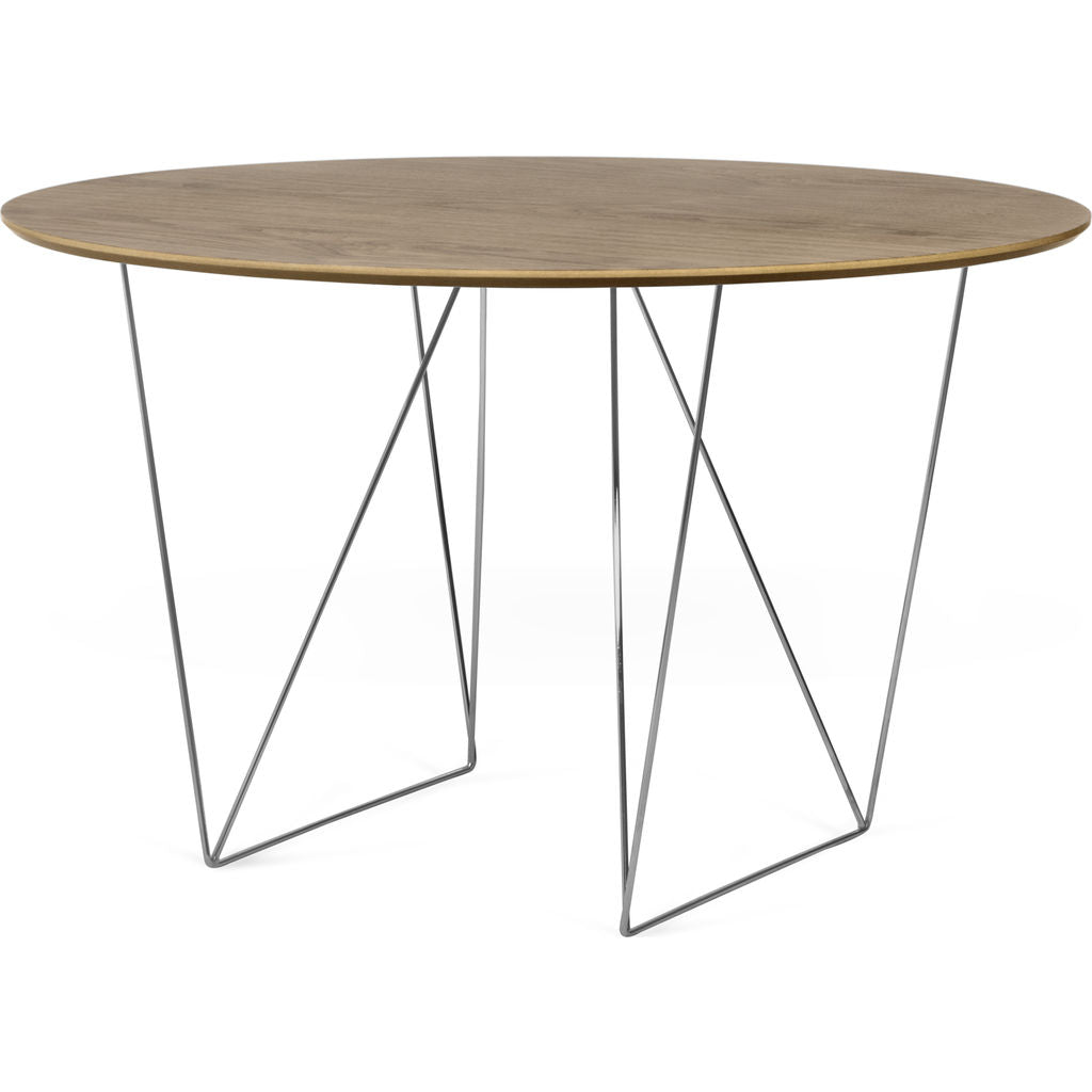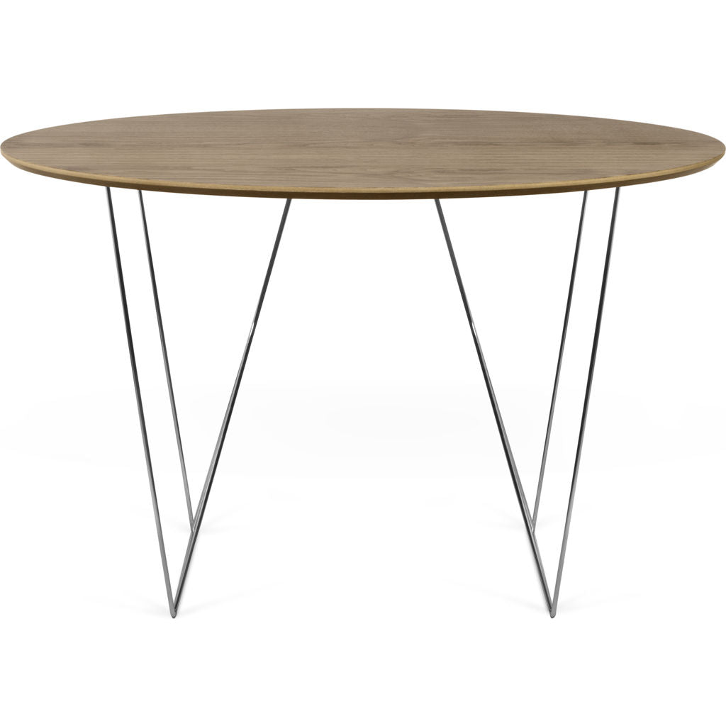 Ideal for enjoying delicious meals or discussing inspired ideas, the Row 120 Dining Table from Temahome is crafted with family and friends in mind.��By combining��a rich��walnut table top and��vibrant chrome��trestles, TemaHome's world renown designers reimagine the traditional round dinning table with a sleek, modern aesthetic. Boasting a generous 120 cm (47") diameter, the Row Trestle Leg Dining Table saves on floor space, while offering maximum surface area for plates, books,��board games and more!