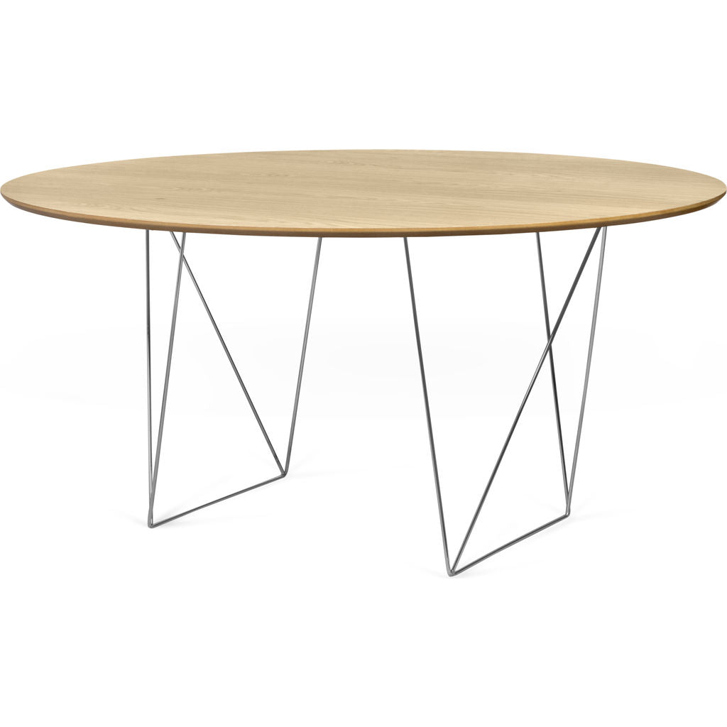 Ideal for enjoying delicious meals or discussing inspired ideas, the Row��150 Dining Table from Temahome is crafted with family and friends in mind.��By combining��a rich oak table top and��vibrant chrome trestles, TemaHome's world renown designers reimagine the traditional round dinning table with a sleek, modern aesthetic. Boasting a generous��150 cm (59") diameter, the Row Trestle Leg Dining Table saves on floor space, while offering maximum surface area for plates, books,��board games and more!