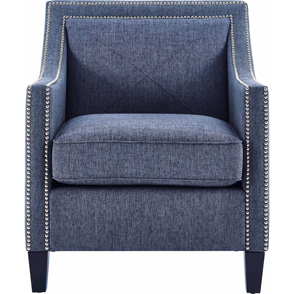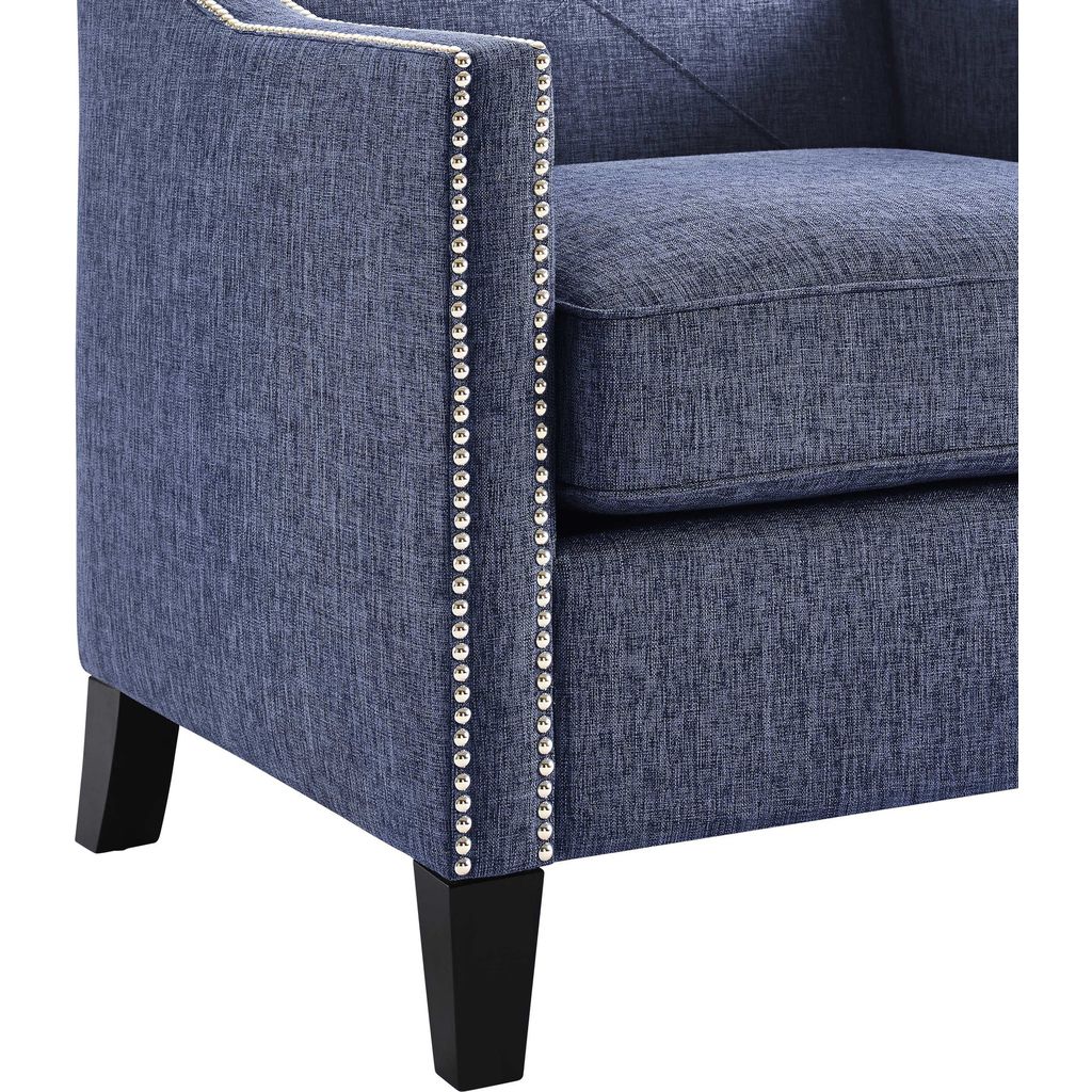 The TOV Furniture Asheville Blue Linen Chair is handmade and crafted from a kiln dried wood frame and features solid birch wood legs. The nail head trim is applied by hand to add an elegant look. The cushions are removable made from high density foam cushion that will provide maximum support and comfort so you can enjoy this chair for years to come.