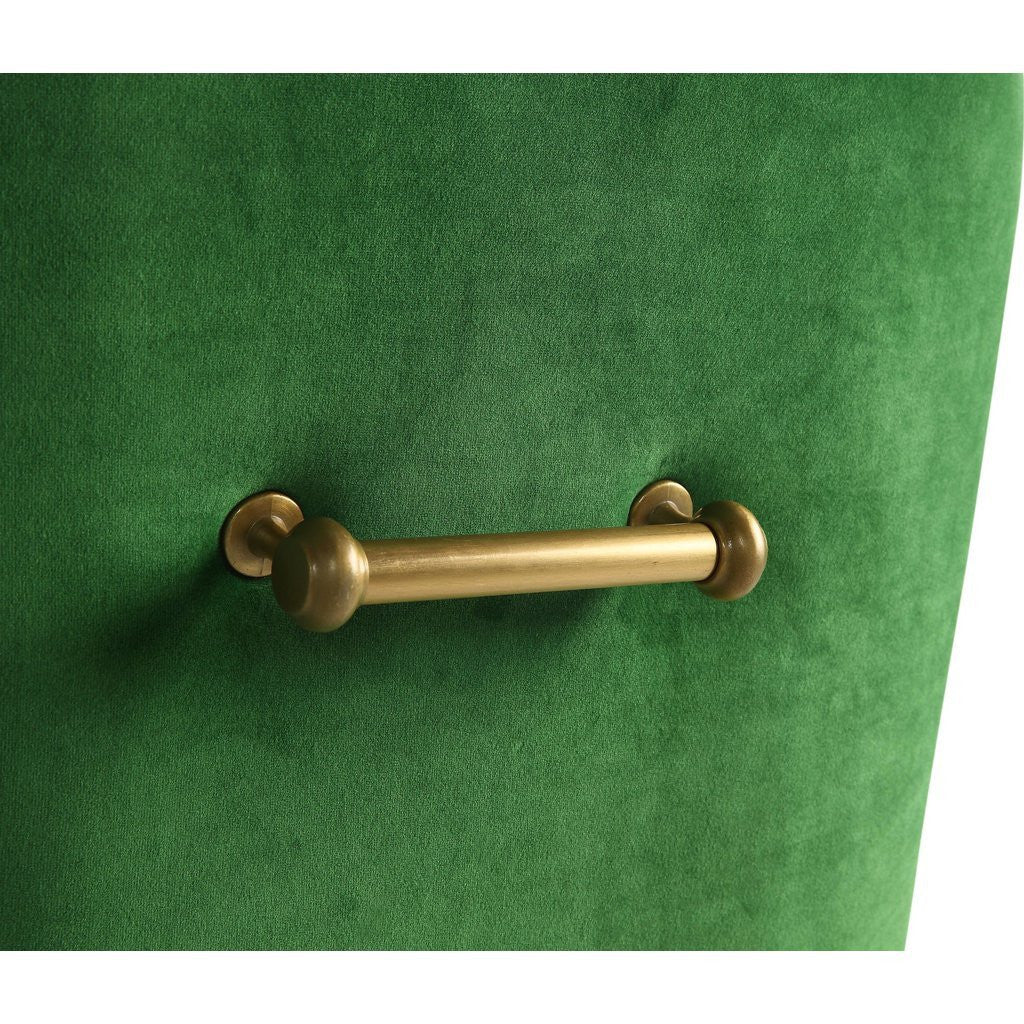 TOV Furniture blends modern elegance, comfort, and functionality in the Beatrix Velvet Side Chair.  This gorgeous green chair features velvet upholstery that is perfectly complemented by the gold stainless steel legs and unique matching handle on the back.  Have this chair sitting pretty in the bedroom, dining room, or living room for a pop of color and glam.