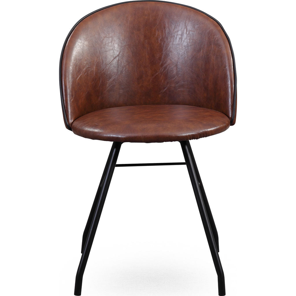 Add personality to your home or office with the TOV Furniture Branson Swivel Chair. Made with dark brown leather and black steel legs it is a true classic. This comfortable desk chair is minimalistic and just a little bit quirky.  Pair this chair with our Dorian desk for the ultimate mid-century modern vibe.