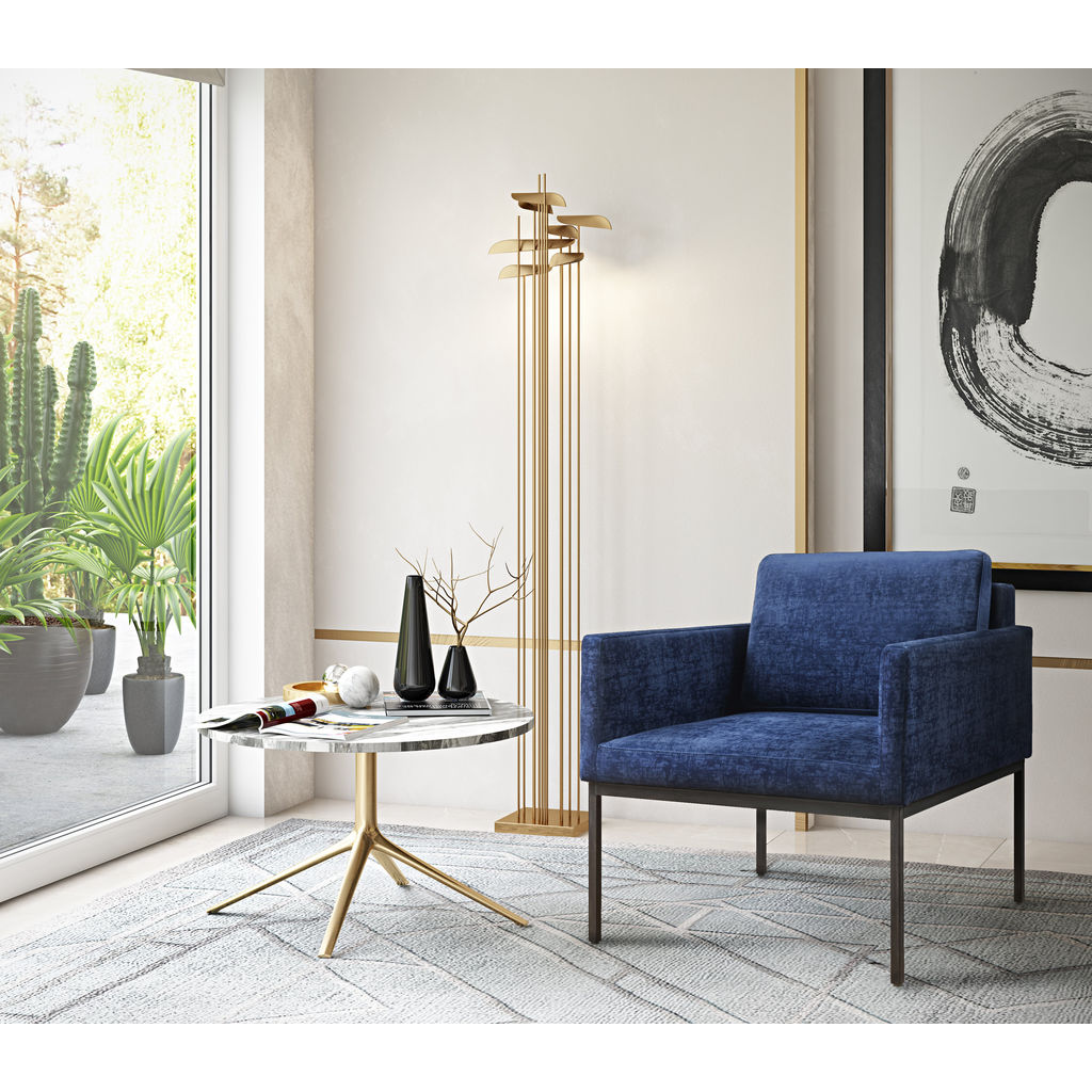 The TOV Furniture Canton Navy Velvet Chair is a clean cut modern design. Perfect for your living room. The minimalistic style chair that is sleek and will complete any look. Featuring beautiful blue lavish velvet upholstery and stainless steel legs.