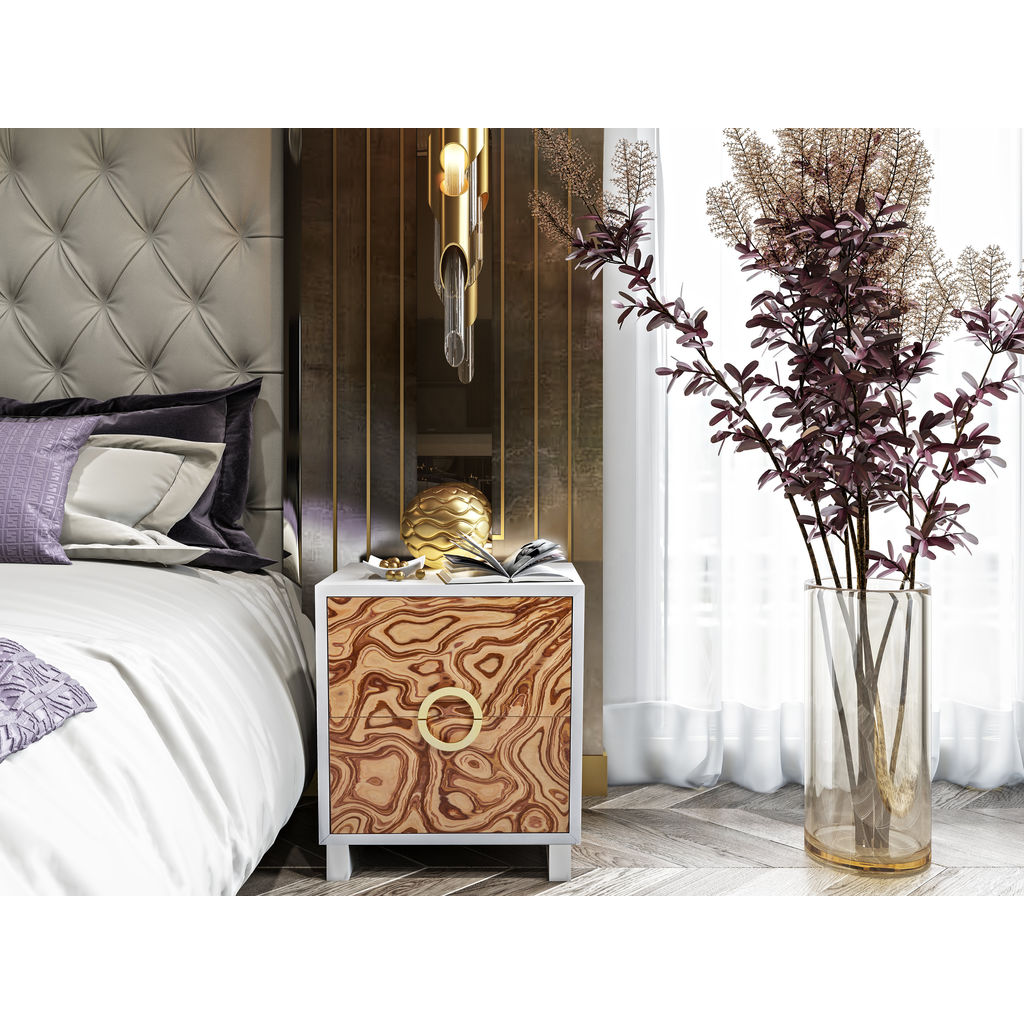 The TOV Furniture Cavalli Laquer Side Table in Brown Burl is the ultimate glam side table! It has intricate details on the face of the drawers, making this small piece a huge showstopper. Perfect for keeping your essentials classy and close by in your bedroom or use as an end table next to your sofa.