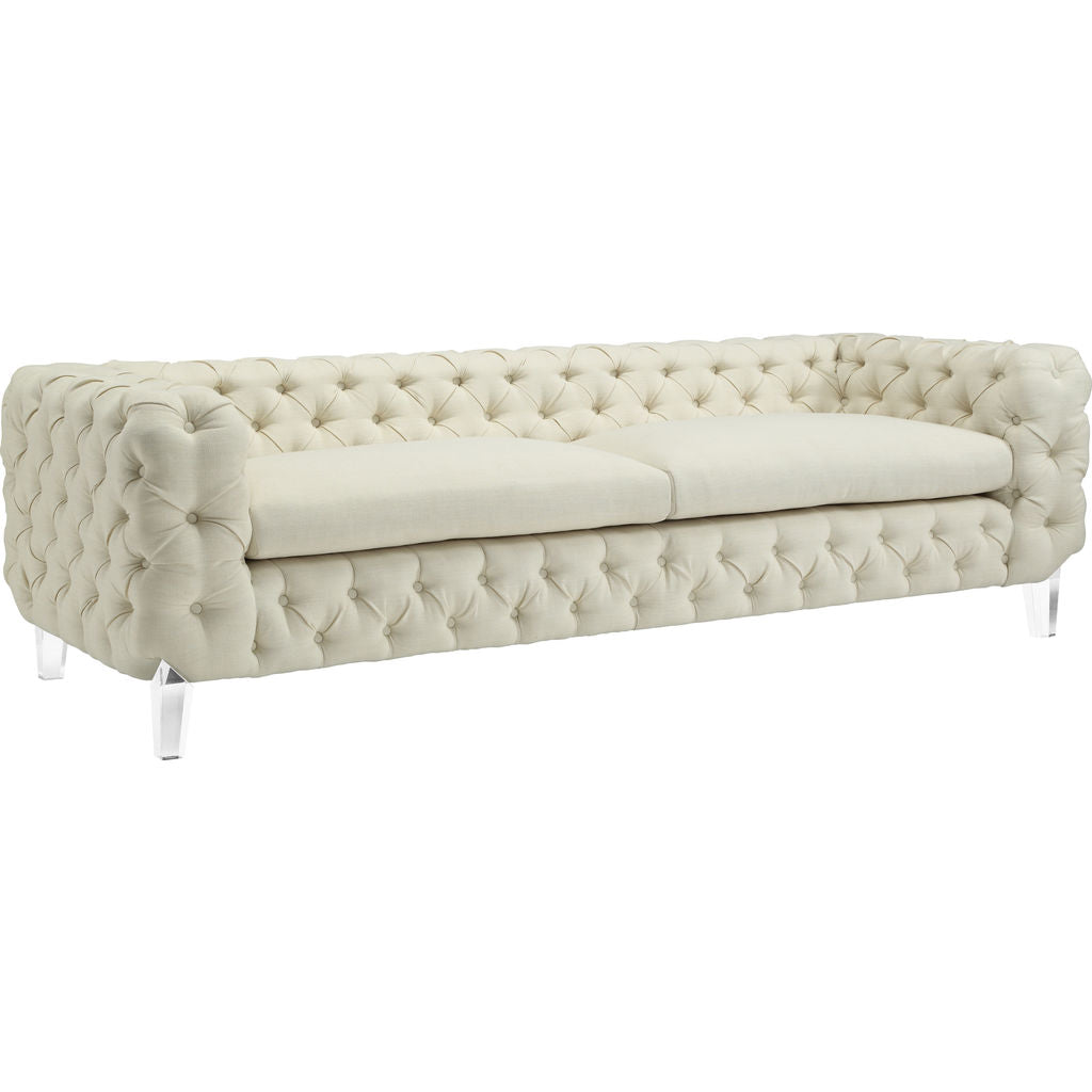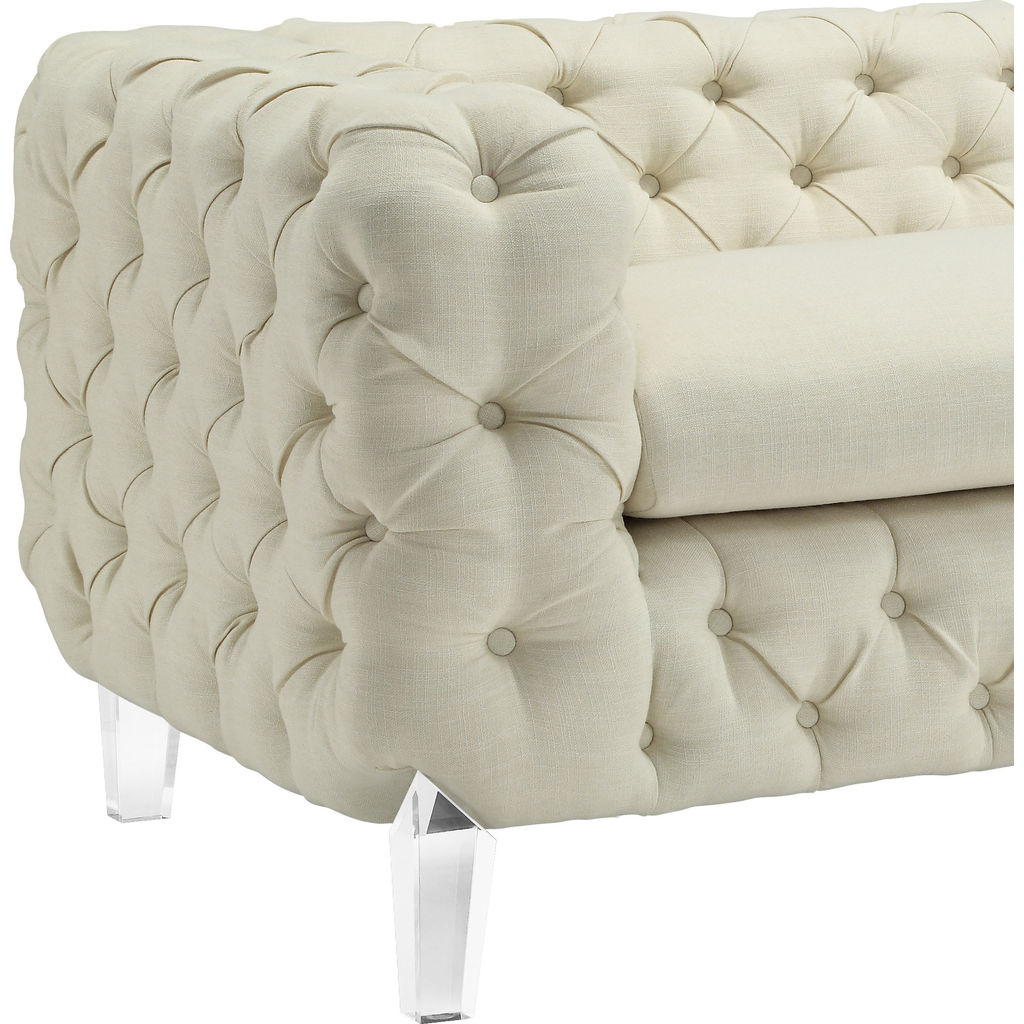 The TOV Furniture Celine Beige Linen Sofa is deep and cloud like. It features plush diamond tufting with lucite legs and chic linen upholstery. The sophisticated design will complete a room like no other sofa. This classic couch is perfect for your living room and you will enjoy it for years to come.