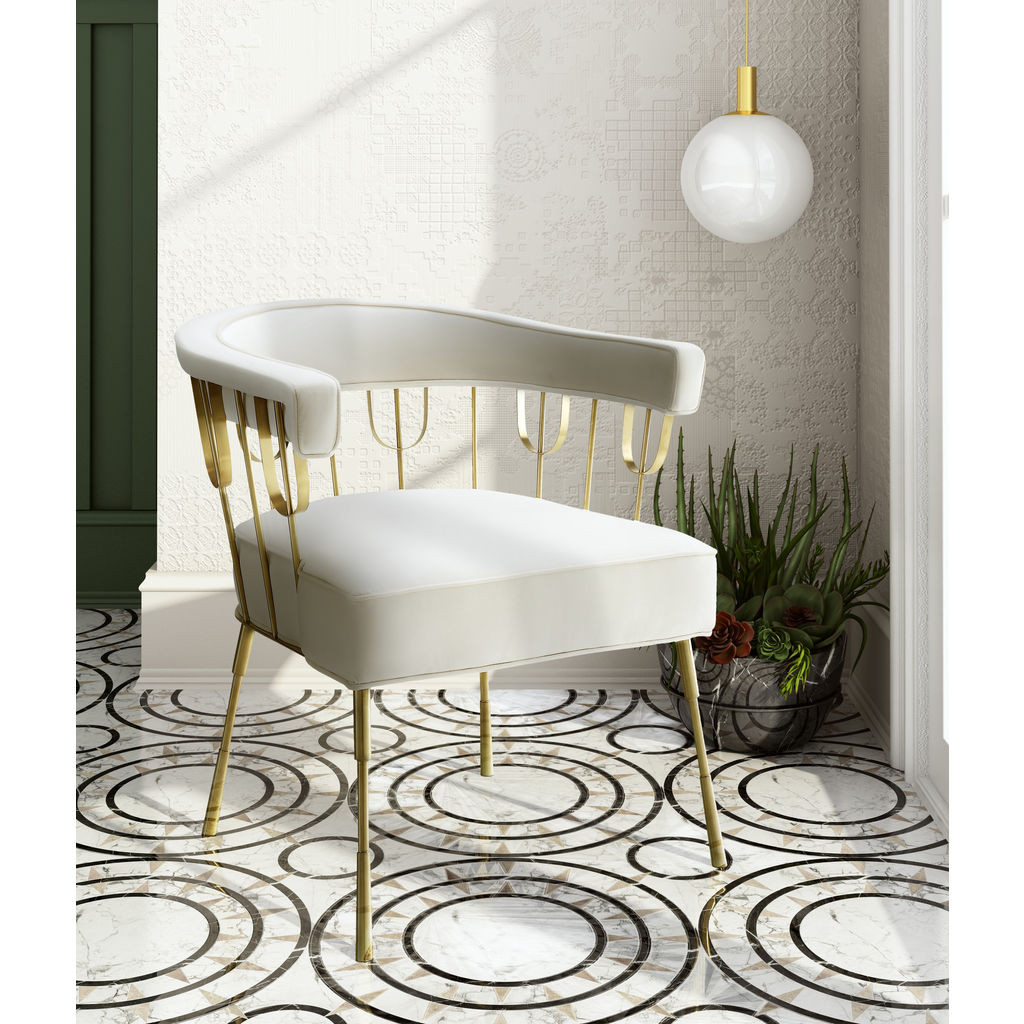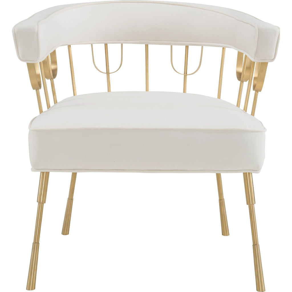 Add an element of elegance to any space in your home with the TOV Furniture Copley Velvet Chair. Made with plush cream velvet upholstery and intricate gold metalwork. This accent chair is sure to make a statement and complete your space with effortless style.