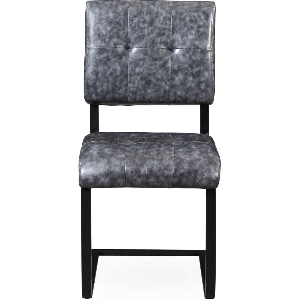 The TOV Furniture Cora Side Chair in Grey Eco Leather and Black is designed to blend in with any style. The perfect chairs to pair with your dining table, contemporary and comfortable. These chairs come in a set of 2.