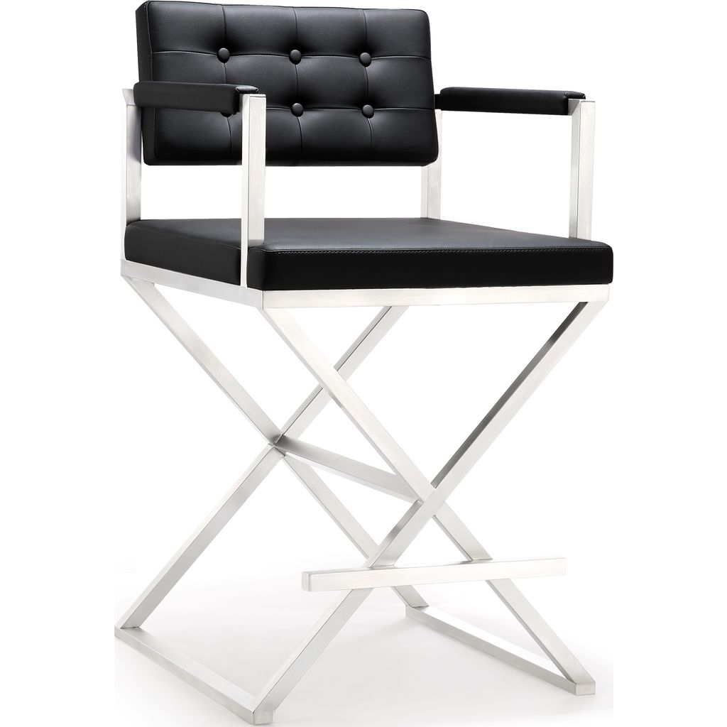 Looking for the perfect counter height stools for your kitchen or bar area? The TOV Furniture Director Stainless Steel Counter Stool in Black are perfect! Stylish contemporary chairs that provide a sturdy base and plush extra deep seat. There is also a footrest to ensure that you stay comfortable. The combination of angles and gentle curves gives this stool an eye-catching appearance, while the neutral color will match well with any decor.