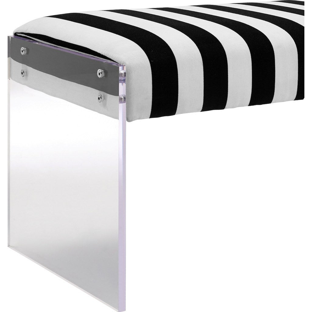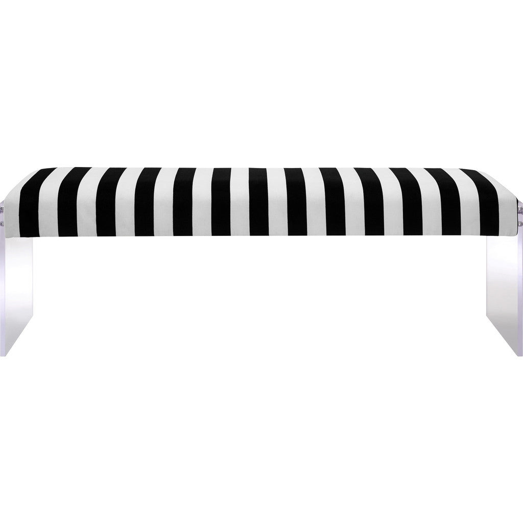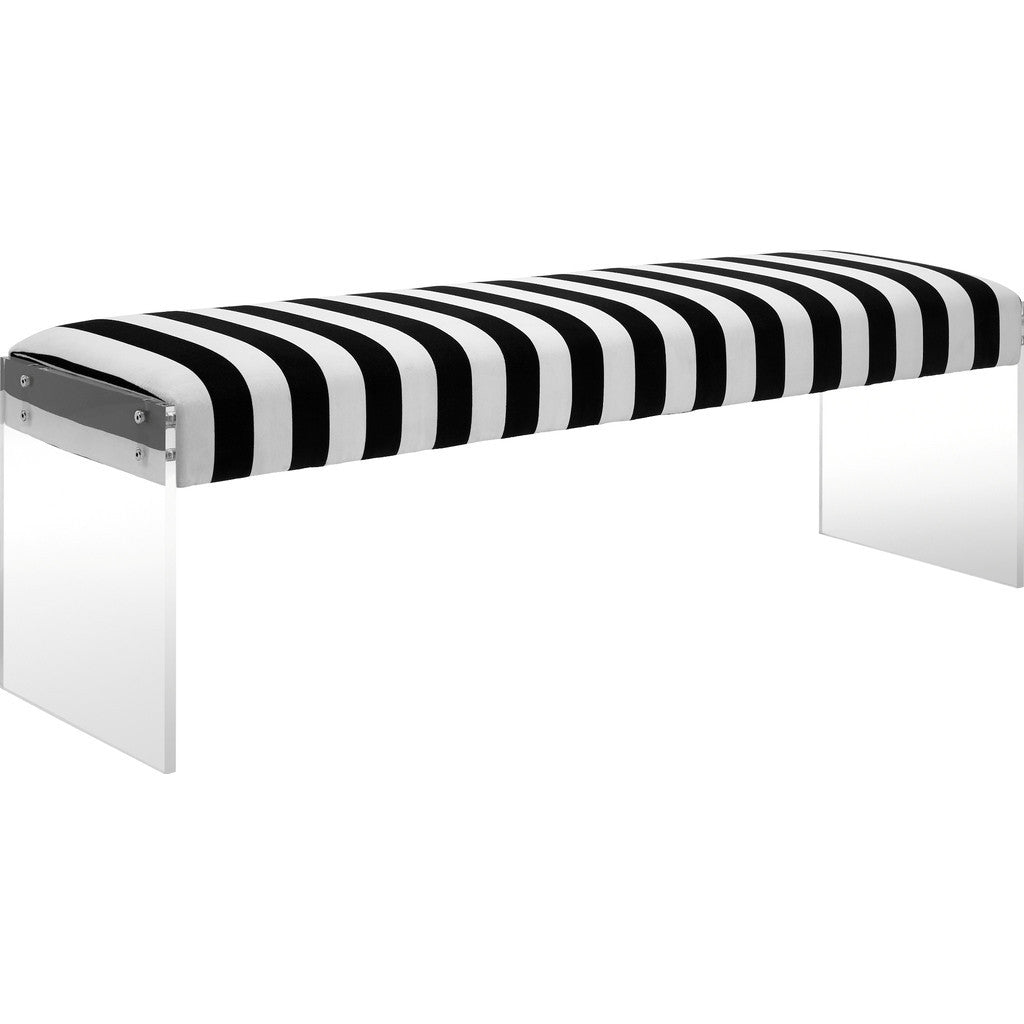 The Envy Leather and Acrylic Bench features a chic and mod plush striped seat. The clear acrylic legs provide a modern contrast to the black and white bench. Add a little modern elegance to your home whether it be in the foyer or at the foot of your bed.