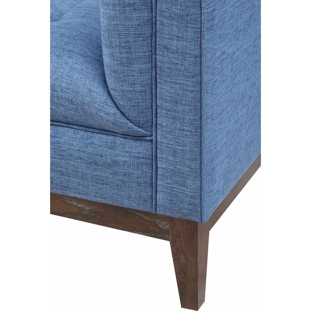 TOV Furniture was inspired by classic Mid-Century design for the Blue Gavin Linen Chair. Handmade by skilled furniture craftsmen, this chair is truly something special. Supported with a kiln dried solid wood frame and antique brown Ash wood trim and legs, this chair will last for years to come. Add style and comfort to your living room with this classic chair.
