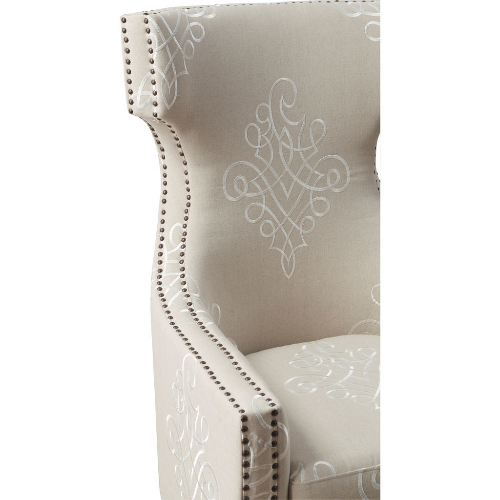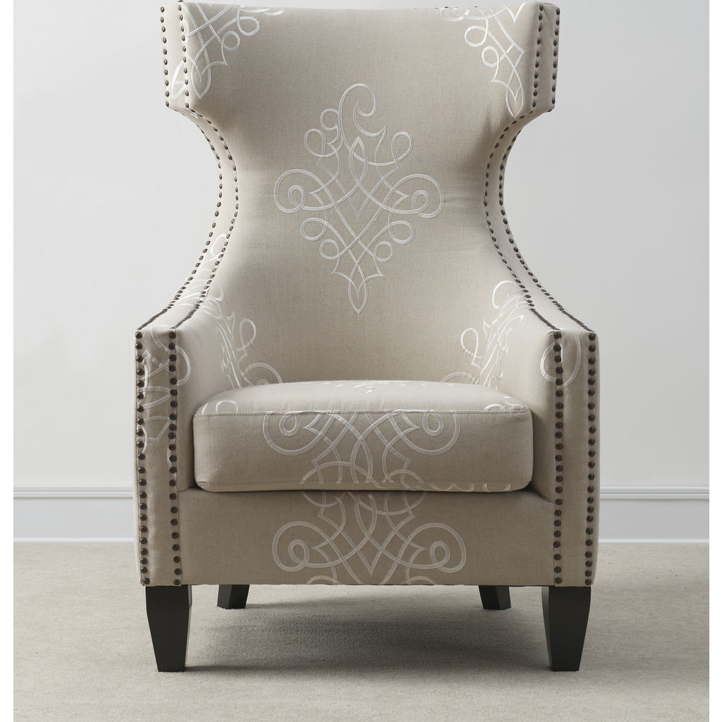 TOV Furniture Gramercy Embroidered Linen Wing Chair | Beige