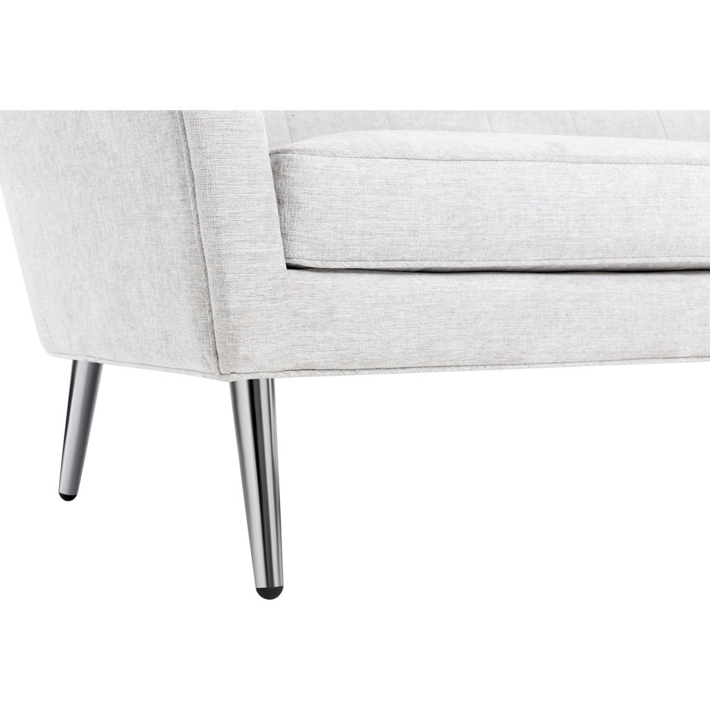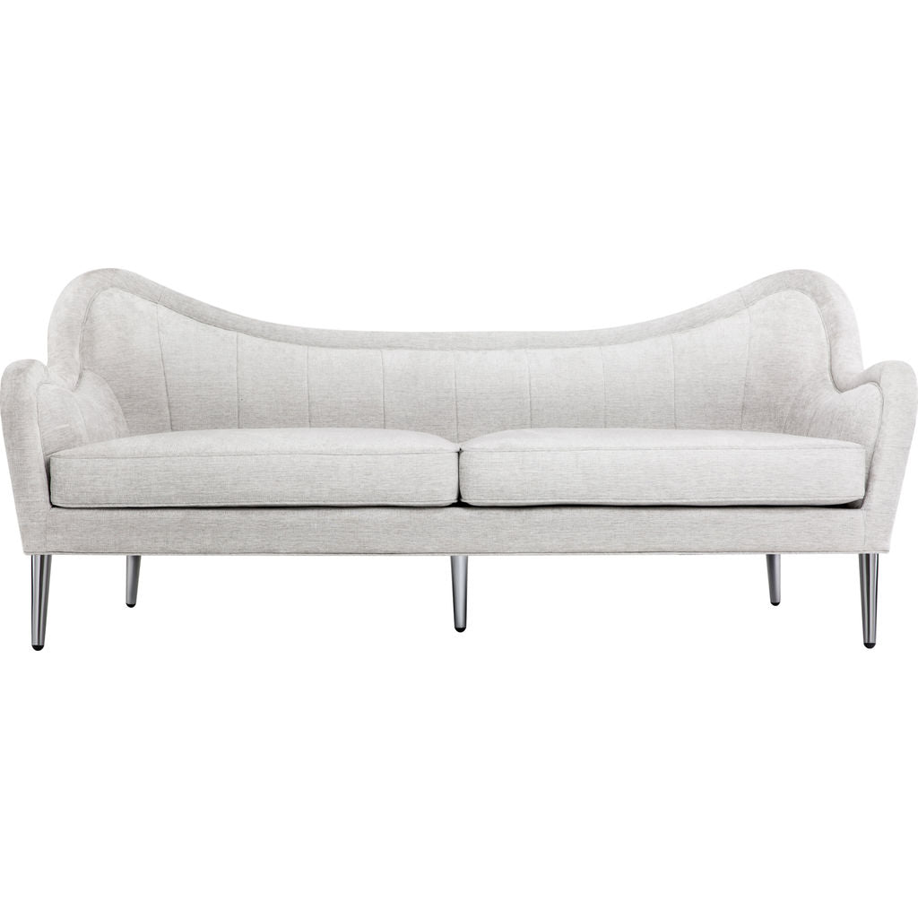 TOV Furniture Isadora Light Grey Sofa has gentle flowing curves giving this sofa an elegant shape. This couch is handmade and crafted with luxurious fabrics while the conical shaped legs present a chic finishing touch that will make it the envy of any room. Featuring silver steel legs to complete the simple classic design.