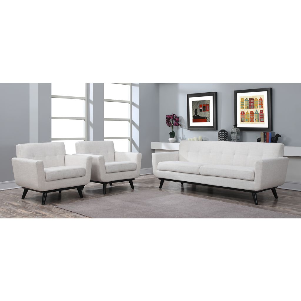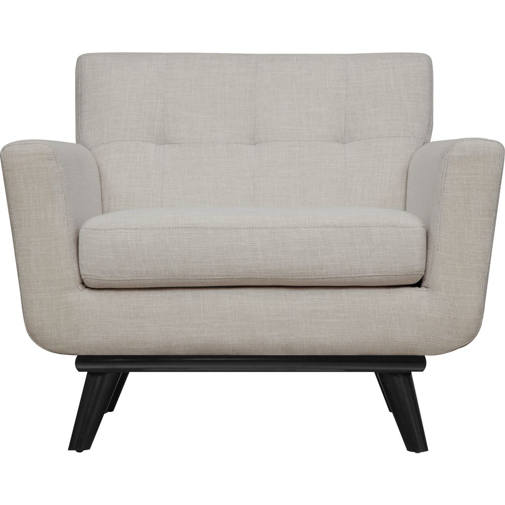Inspired by Mid-Century design TOV Furniture created the James Beige Linen Chair. It is a is contemporary design that has masculine elements. The cushioned arms will provide you with added comfort while the small scale tufting adds unique personality. Crafted with a kiln dried wood frame with solid Birch legs, this handcrafted chair will undoubtedly add style to your living room or any other room in your home.