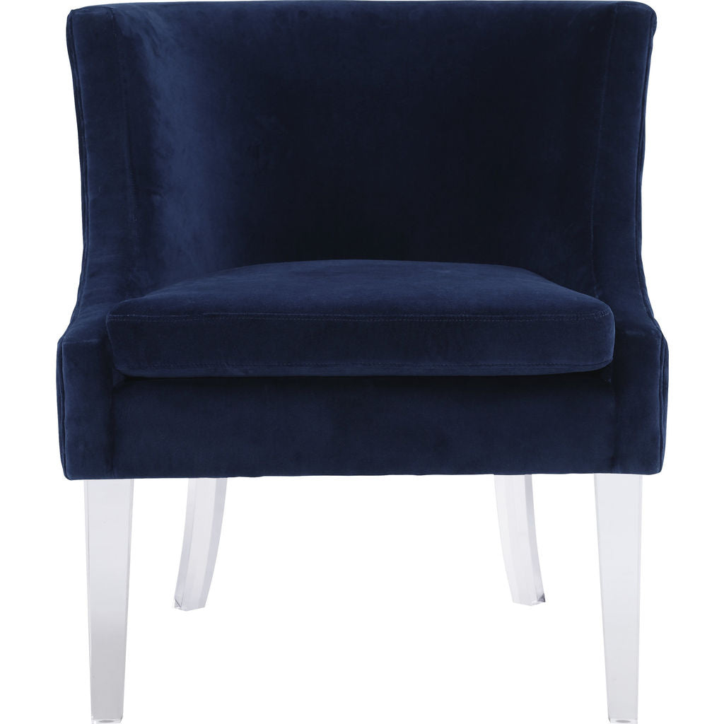 The Myra Blue Velvet Chair is an instant classic. TOV Furniture does it again with this classy and stylish chair. The perfect accent chair for you living room to complete the look. made with soft plush velvet and featuring tall lucite legs provide subtle elegance that will enhance the style of any space.