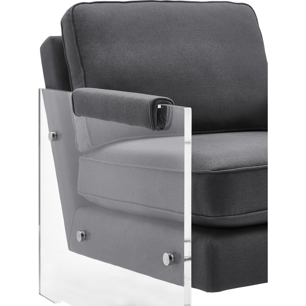 Forming a brilliant synergy of contrasting materials, the linen Serena chair from TOV Furniture is a contemporary recreation of the timeless arm chair. Utilizing a clear lucite frame and arms, this arm chair offers the enchanting illusion of appearing suspended in mid-air. In addition to its remarkable modern design, the Serena is handmade by artisan-like craftsmen to ensure comfort and enjoyment for years to come.