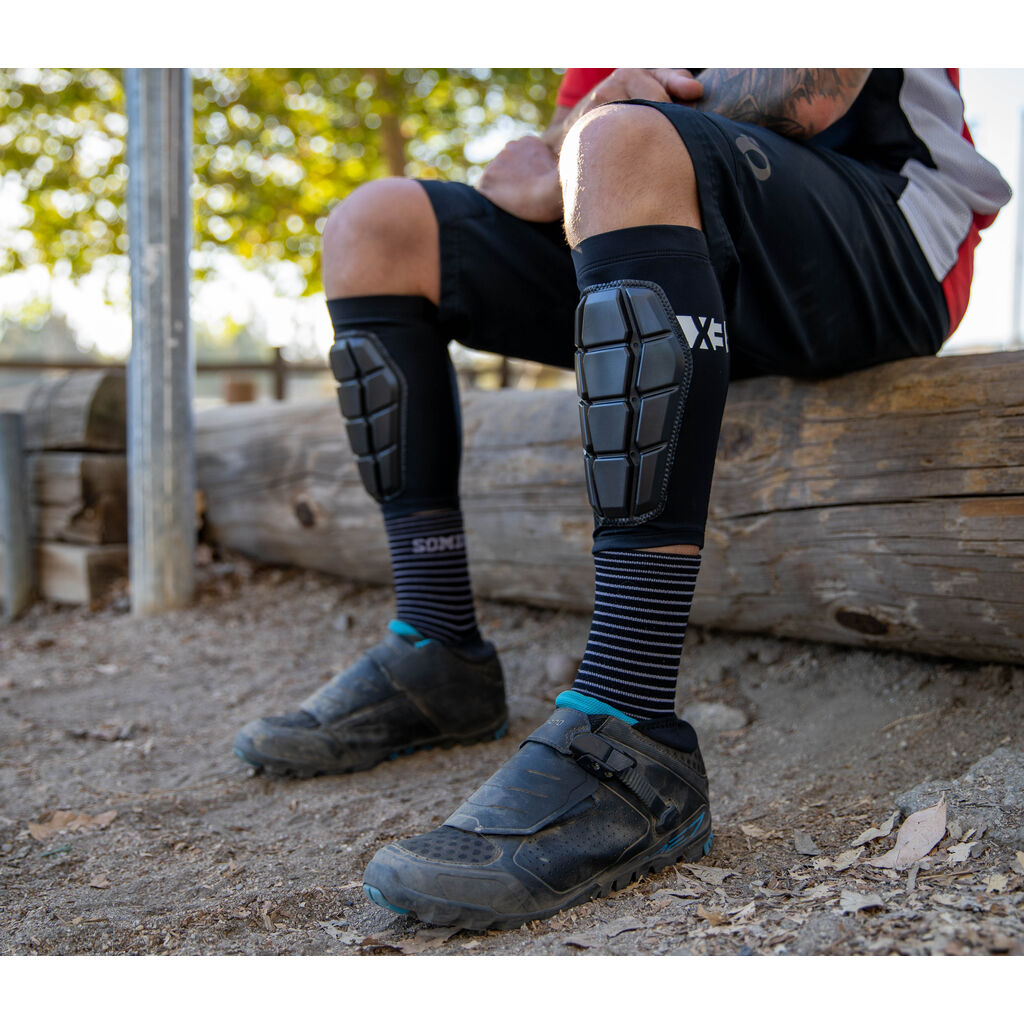 The G-Form Pro-X3 shin guards have been designed for beginners and experienced riders alike. They feature SmartFlex pads that conform to your body shape for optimal comfort and harden on impact in the event of a crash. These pads are layered with a soft, perforated inner foam layer, providing protection, comfort and breathability. These shin guards also feature an anti-abrasion material in the calf area, which protects the skin from pedal impact.