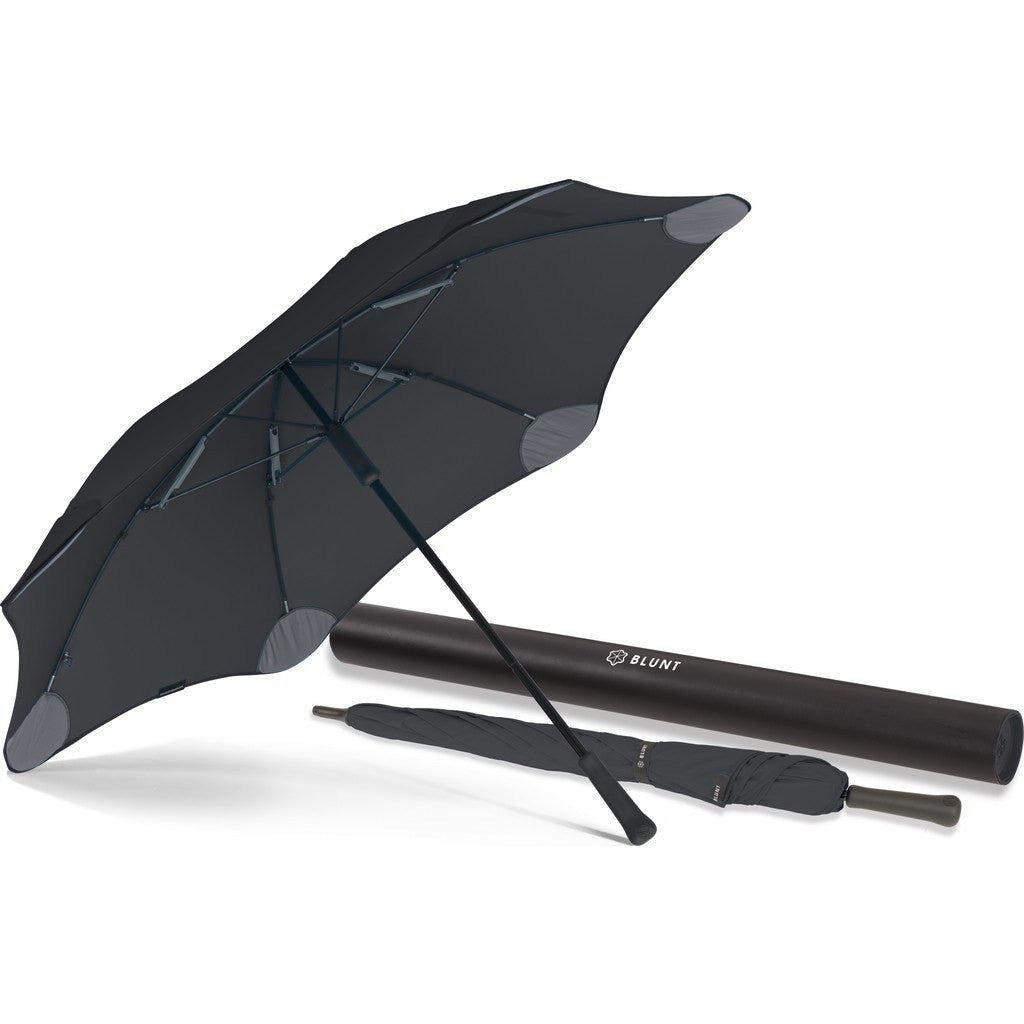 Blunt Umbrellas aren't your average corner store umbrellas: they're designed with meticulous care and made with the finest materials for a resilient, stylish umbrella that will be at your side when you need it for a long time to come. The Classic Blunt is the original Blunt umbrella, tested at up to 72 mph or Force 11 winds, so you won't have to worry about harming a passerby or losing your coverage. The Radial Tensioning System distributes the force necessary to open the umbrella, simplifying the process. With a wealth of useful features and an intuitive, powerful design, this is the umbrella for you.