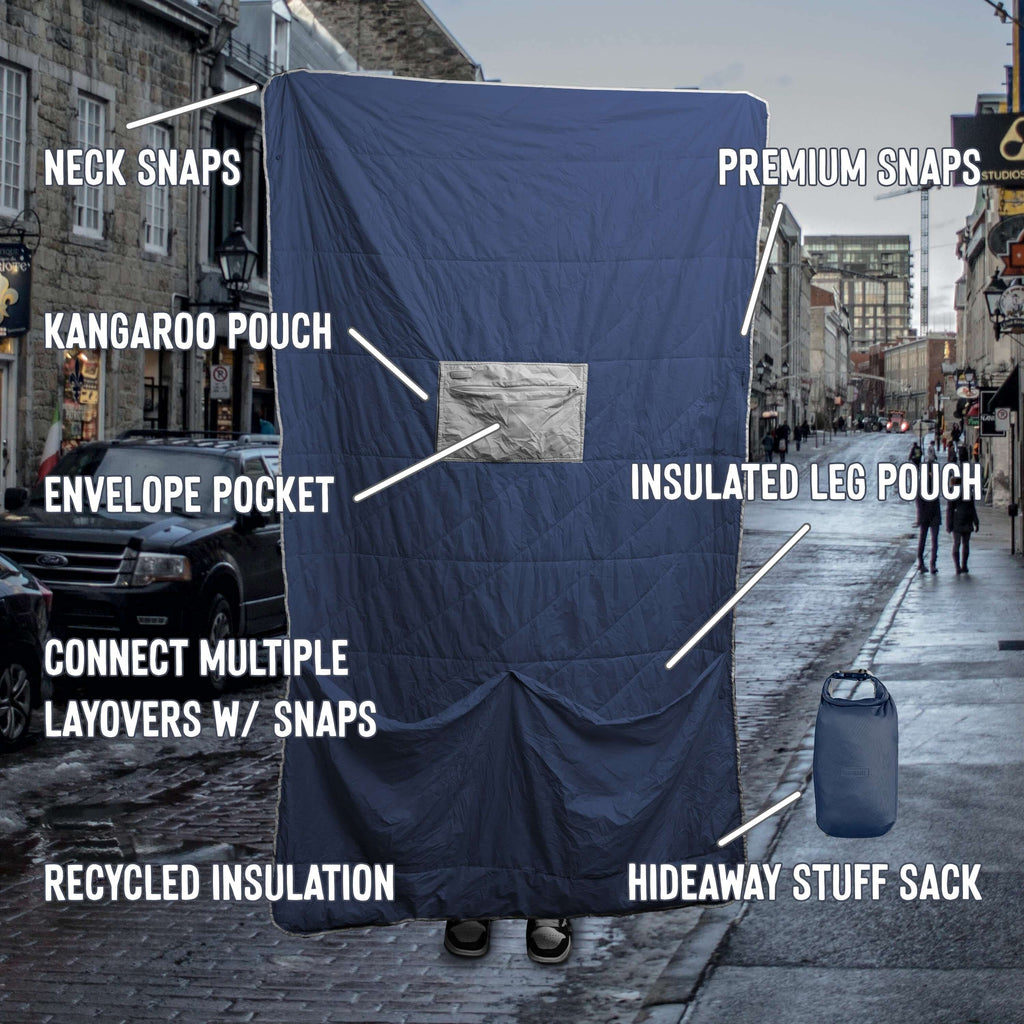 Gravel's puffy packable travel blanket for anywhere, like flights, road trips, picnics, or Netflix binges. Easy warmth and comfort on-the-go.