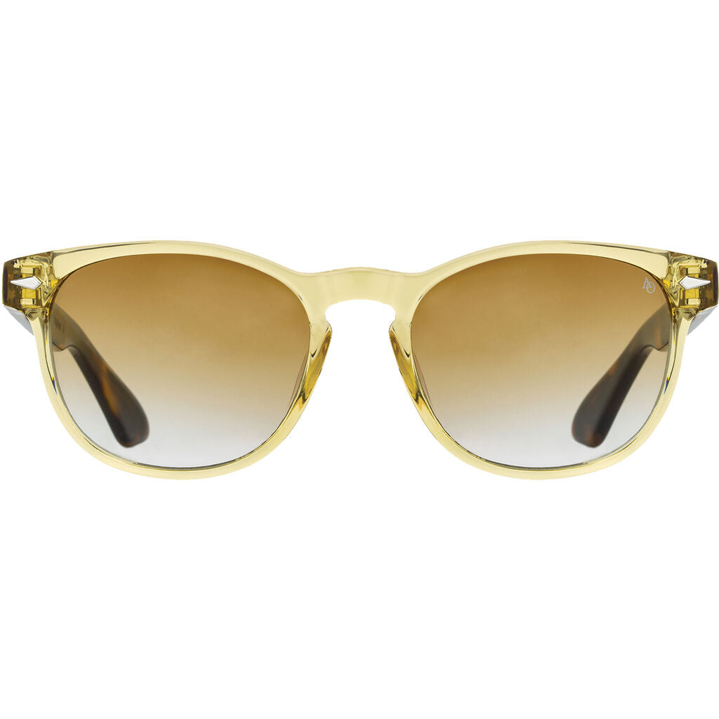 AO Eyewear presents a unique AO-1004 sunglass that gives you a classic and modern look. It is made from high-quality materials that make it lightweight and long-lasting. The AO-1004 marks the first brand-new AO frame design in decades and we started with a really good one. The shape of the AO-1004 and its keyhole bridge flatters everyone, and we mean everyone. We've expanded on the classic AO color palette with crystal and multi-colorways and on-trend Sun Vogue gradient lenses, but kept the style rooted in classic AO design with the same asymmetrical silver decor that adorns the Saratoga. The lens width is 51mm and the height is 38mm. The nose bridge is 18mm and the temple length is 145mm, which fits every face shape and can be easily worn by any gender. These sunglasses for men and women are the perfect choice for outdoor sports and activities such as driving, shopping, traveling, and hiking. They are also suitable as a high fashion accessory and made for daily wear all year round. They will be an ideal gift for your friends, family, or loved ones for any occasion.
