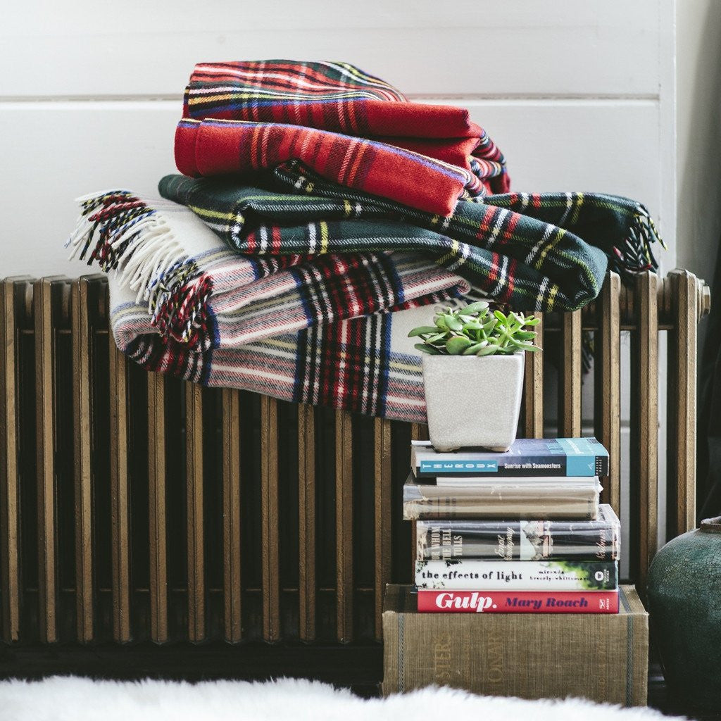 A Faribault classic, the Royal Carefree Stewart Throw is crafted with 100% Merino wool for a luxurious feel. This Green Plaid throw is perfect for picnics or getting cozy on the couch.