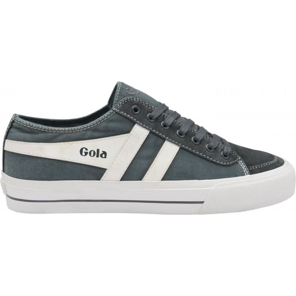 Reimagining the popular style Quota from the Gola Classics back catalogue, Quota II is an update that gives impact. Returning with an on-trend deep foxing and washed graphite canvas upper, Quota II for men features a plush suede toe and facing, tonal lace up fastening and self colour stitching for a classic plimsoll look. Incorporating a vulcanised sole unit and finished with the iconic wingflash and Gola Classics tongue and heel branding, Quota II has a relaxed, understated vibe.