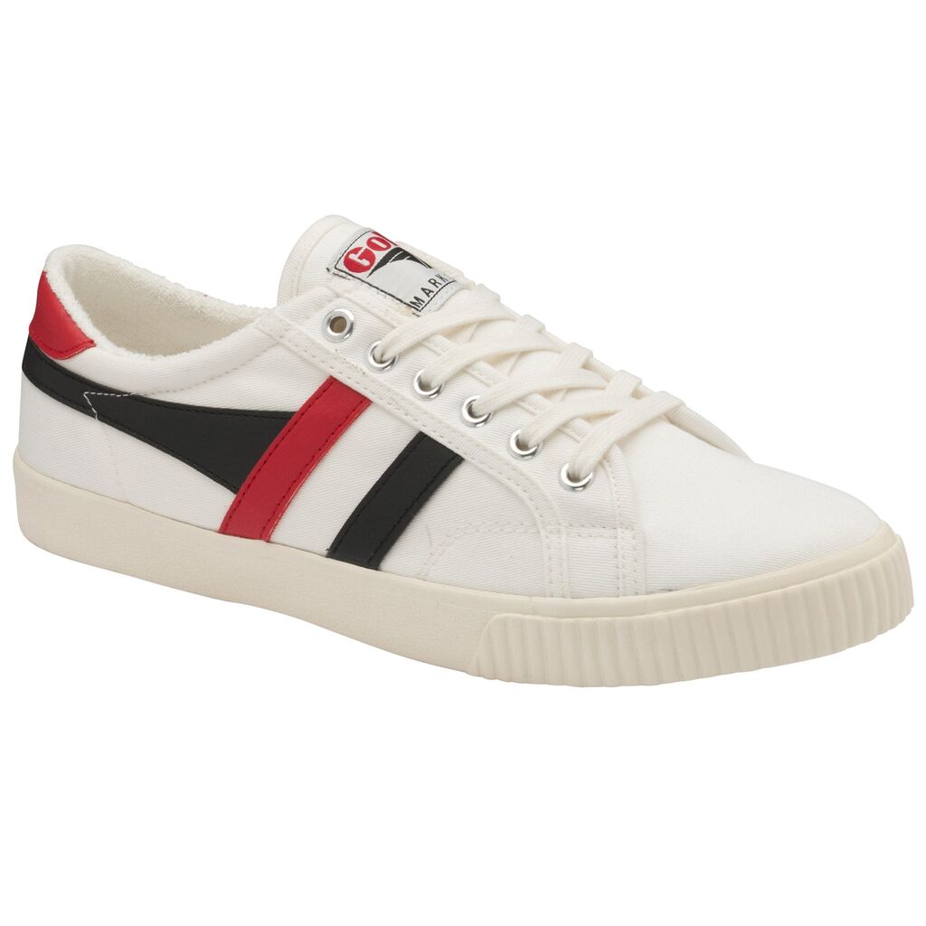 Gola Classics introduces Tennis – Mark Cox. Based on an original Gola style from 1975 that was worn by tennis player Mark Cox, Tennis truly embraces Gola's long history with racquet sports. This men's tennis inspired plimsoll features a off white upper, with a contrasting black and red wingflash. Gola branding can be seen on the tongue and heel-turn.
