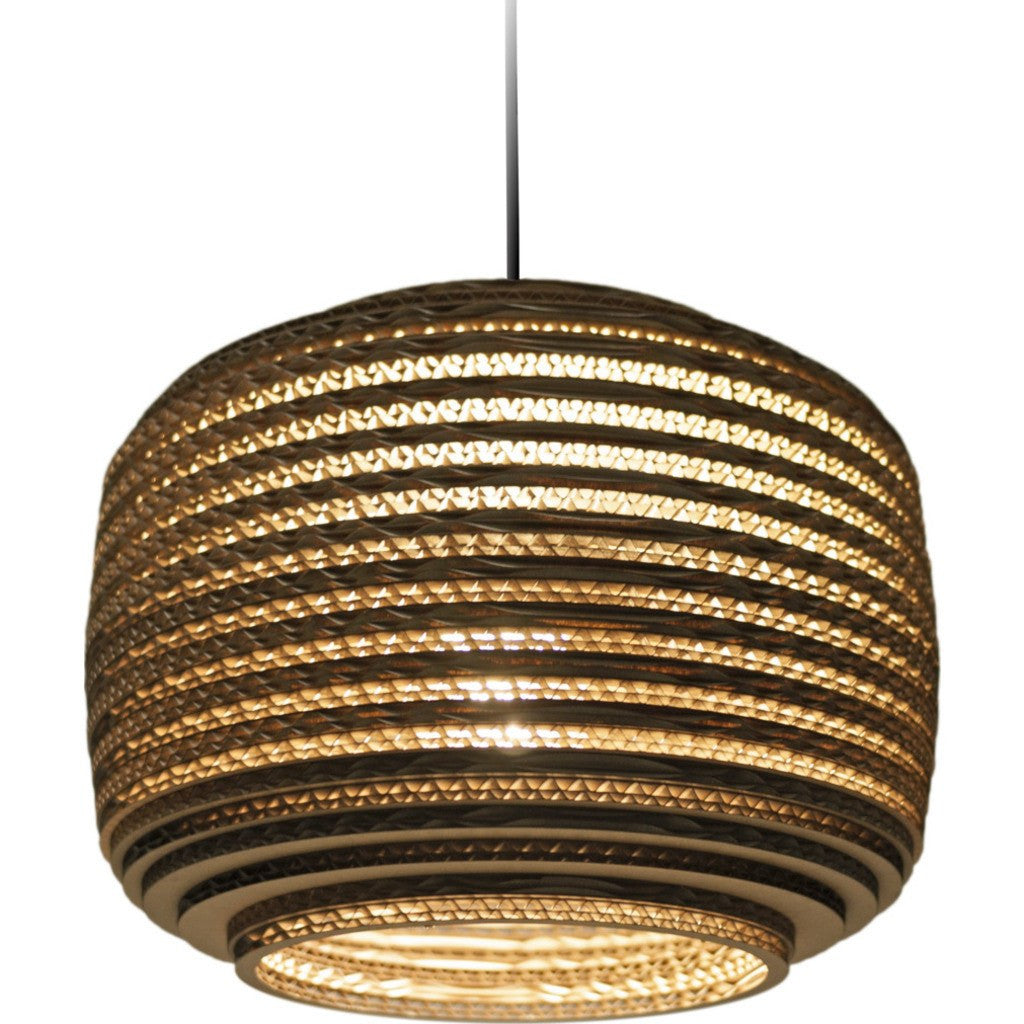 The Ausi12 is part of Graypants' signature Scraplight series--the series that started it all. This light is made from repurposed cardboard and can be used in virtually any setting, offering pleasant, practical light. Each fixture is made using a precision cutting laser, hand-assembled with a nontoxic adhesive, and treated with an environmentally friendly fire retardant.