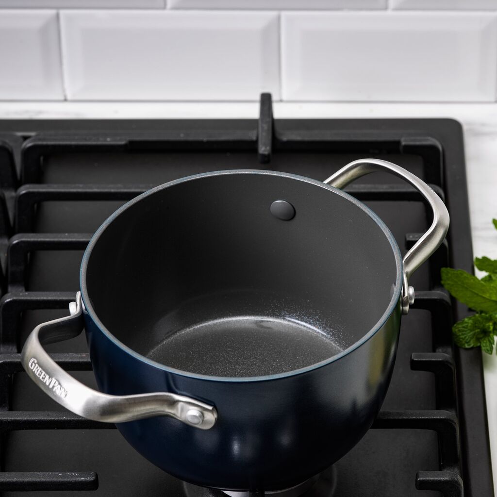 - GreenPan’s Thermolon healthy ceramic nonstick coating is free of PFAS, PFOA, lead, and cadmium, so it won't release toxic fumes, even if it’s accidentally overheated.