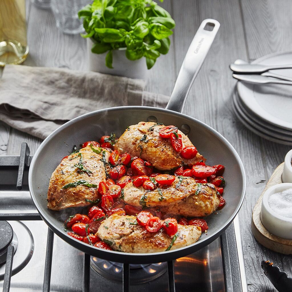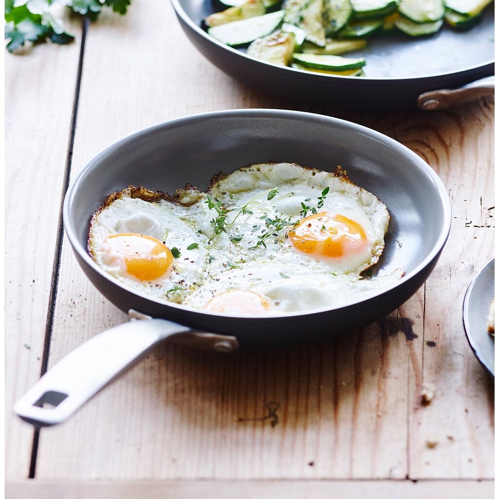 Designed to be your everyday go-to, our Chatham collection features GreenPan’s signature healthy ceramic nonstick coating. For extra resilience, we reinforced it with diamonds so you can simmer, braise, and sear with ease (the best part: each and every piece is metal utensil safe). An ultra-tough hard-anodized aluminum body won’t warp, chip, or scratch no matter how many breakfasts, lunches, and dinners it turns out—and it’s free of PFAS, PFOA, lead, and cadmium, too. In a versatile 12” size, this frypan is an egg-scrambling expert but won’t stop there. Drip-free edges for easy pouring and an oven-proof stainless steel handle for secure grips mean it’s primed to pitch in for every meal you dream up.