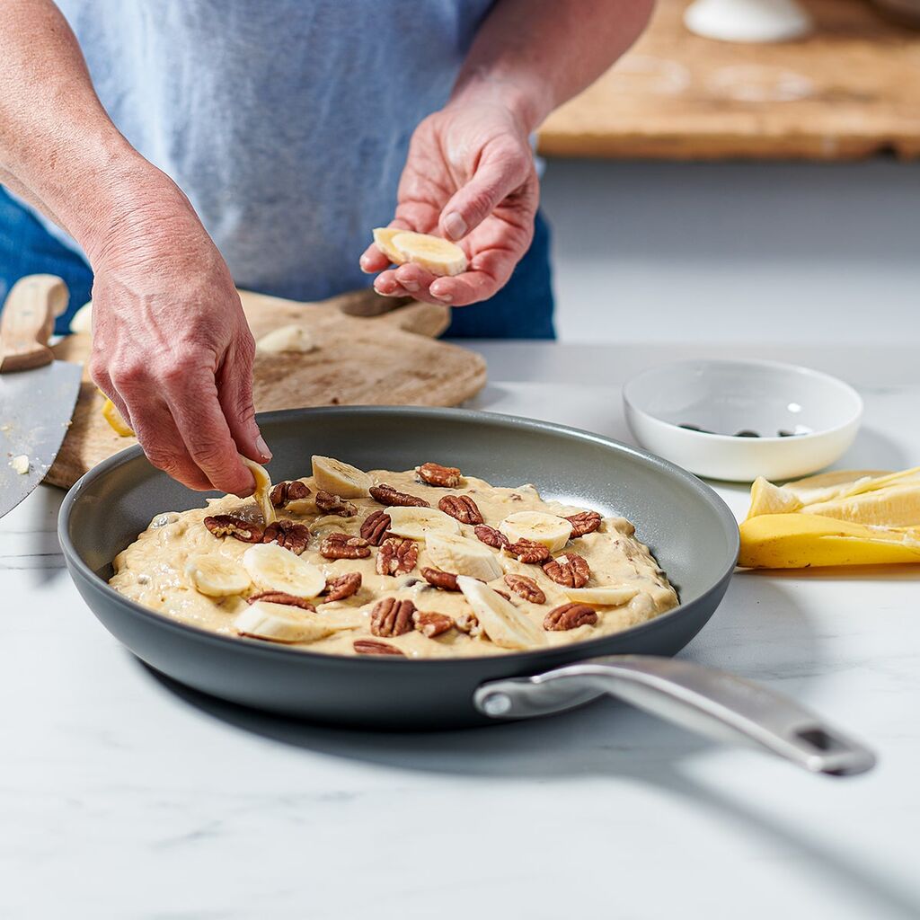 Designed to be your everyday go-to, our Chatham collection features GreenPan’s signature healthy ceramic nonstick coating. For extra resilience, we reinforced it with diamonds so you can simmer, braise, and sear with ease (the best part: each and every piece is metal utensil safe). An ultra-tough hard-anodized aluminum body won’t warp, chip, or scratch no matter how many breakfasts, lunches, and dinners it turns out—and it’s free of PFAS, PFOA, lead, and cadmium, too. In a versatile 8” size, this frypan is an egg-scrambling expert but won’t stop there. Drip-free edges for easy pouring and an oven-proof stainless steel handle for secure grips mean it’s primed to pitch in for every meal you dream up.