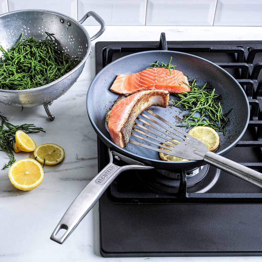 • Manufactured without the use of PFAS, PFOA, lead, or cadmium so it won’t release toxic fumes, even when overheated