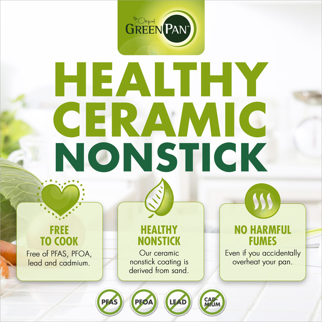 - Healthy Ceramic Nonstick: Free of PFAS, PFOA, lead, cadmium and persistent pollutants, our cookware never releases harmful fumes when overheated.