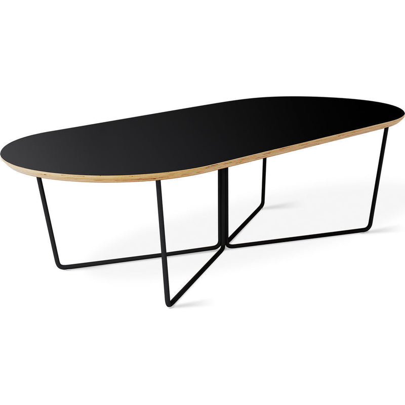 The oval-shaped Array Coffee Table boasts an elegant geometric base that repeats around a central axis, creating a remarkable contemporary aesthetic. The black table top is complete with a beveled, exposed-ply edge and durable laminate surface - a truly striking companion to the minimalistic base. Just one piece of the Array Table Series, the Array Coffee Table nests perfectly with an Array End Table.
