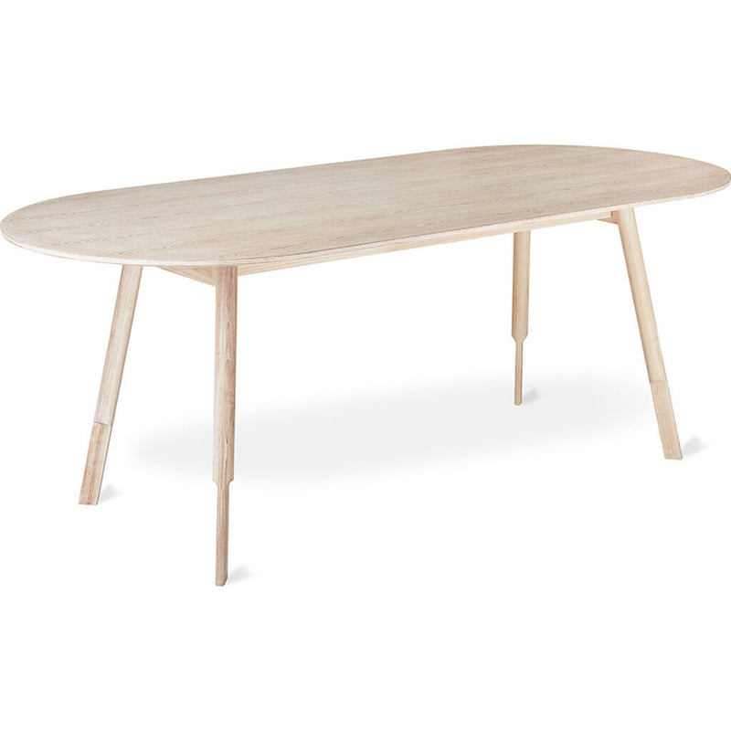 - Oval tabletop constructed with engineered wood core for strength and stability, surface-faced in either Walnut or Ash wood veneer.
