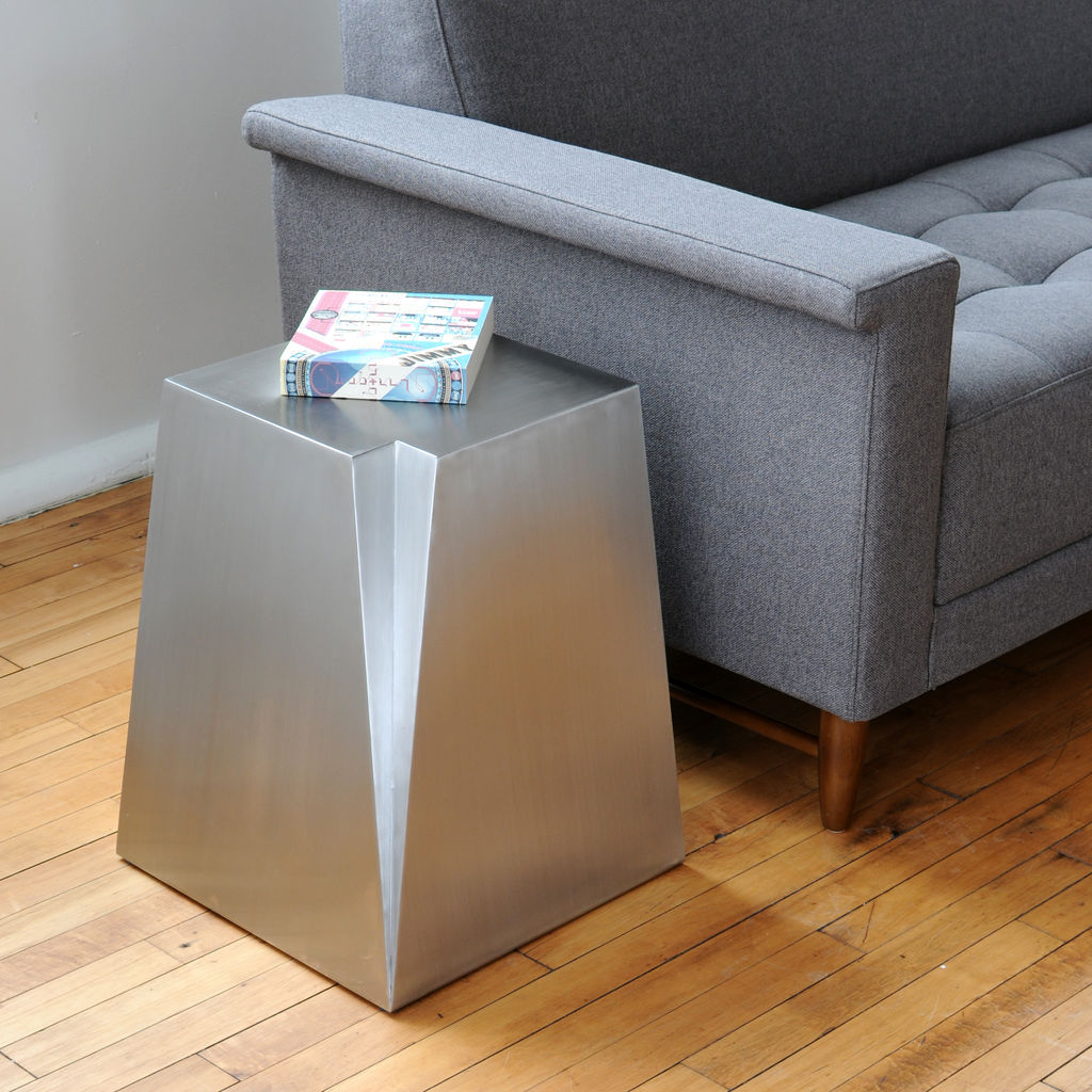 Inspired by the rugged, unforgiving nature of Canadian Landscape, the sculptural Glacier Accent Table is crafted from 16-gauge stainless steel for a striking appearance that's as attractive as it is durable. The Glacier Side Table's solid form is complete with a brushed finish, allowing it to subtly reflect its surroundings.