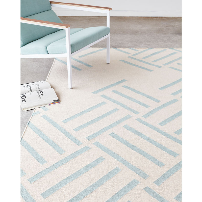Just one part of the innovative Gus* Modern Collection, the Sky Hatch Rug boasts a low-profile design with a minimalist-inspired, abstract pattern. Handcrafted in India using 100% New Zealand wool, the flatwoven Hatch Carpet i complete with hand bound edges.