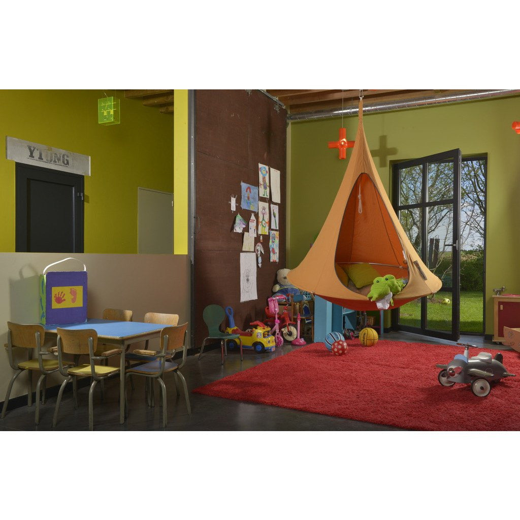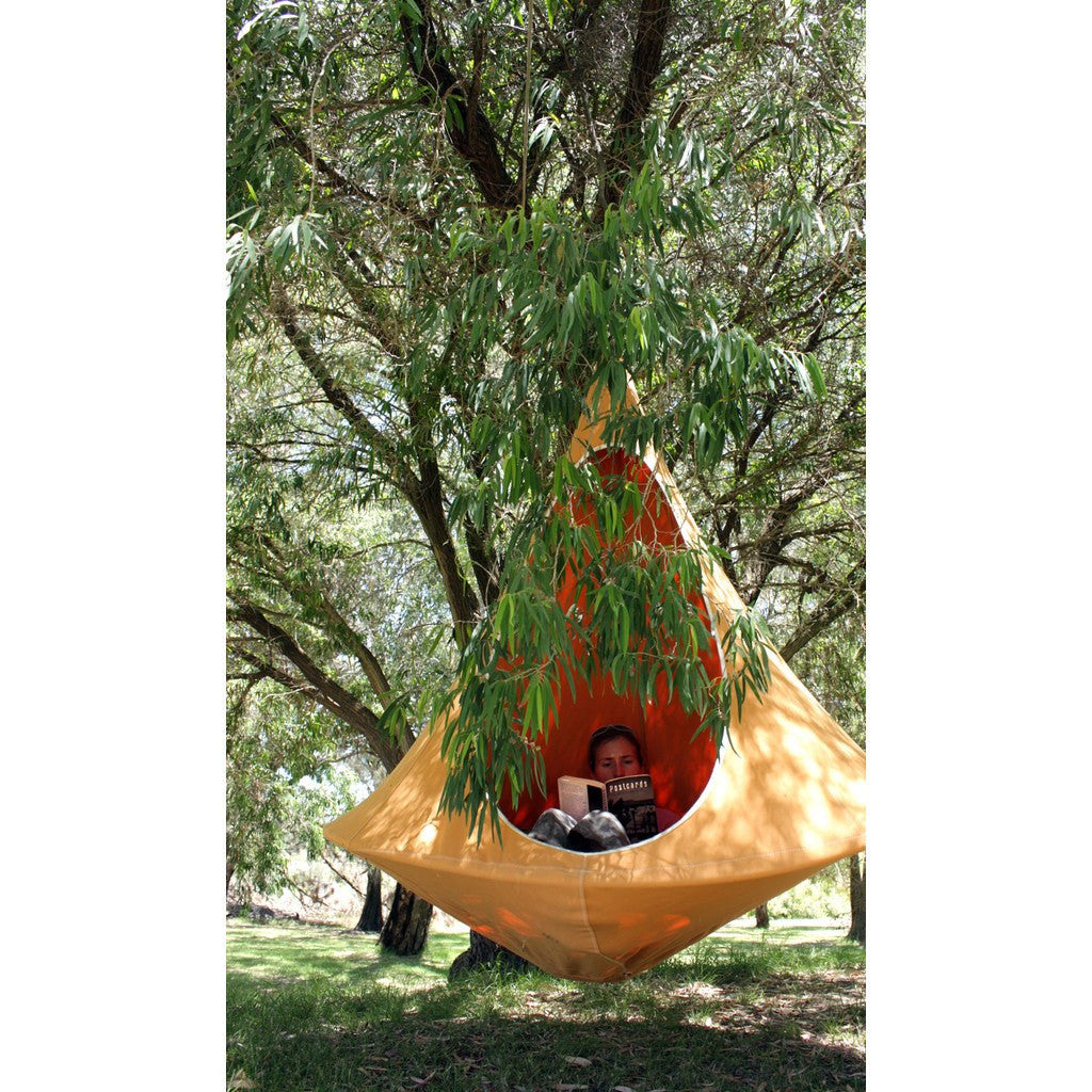 The Single Hanging Hammock is where everything began for Cacoon. This Mango Orange version is constructed with heavy duty materials and repels water. Whether you put it in the living room, hang it from a tree in your backyard or take it to the beach, the Single Cacoon is a great option for staying cozy anywhere you go.
