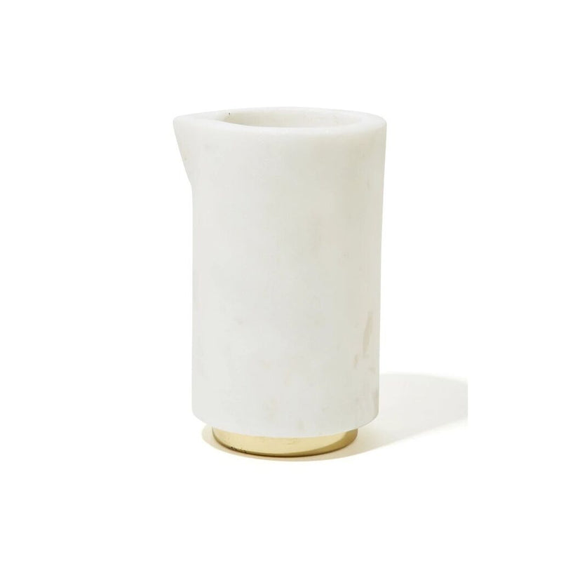 Constructed of hollowed white marble blocks and finished with either a copper or brass base and accessory details, the Mara Creamer are beautiful additions to any dining or kitchen surface. Chill the creamer in the fridge, and add a simple and elegant piece to your coffee service.