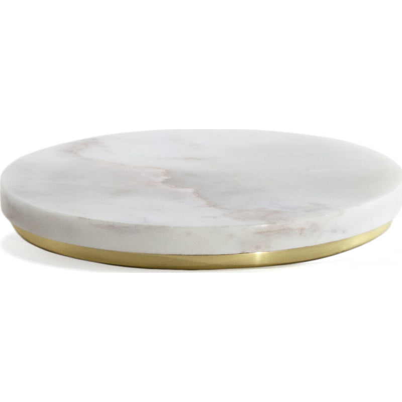 Beautiful together or as separate pieces, the Mara Trivets accent any cook or entertainer's spaces. Constructed of a solid circle of marble with a circular brass foot details, these trivets elevate the everyday. They can also be used for prepping and serving a meal, or use them as a simple pedestal for an arrangement of objet