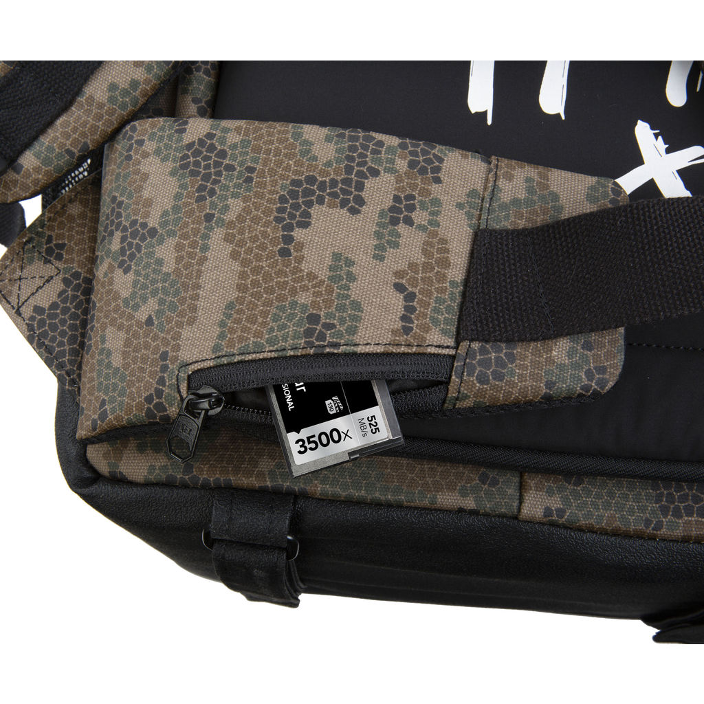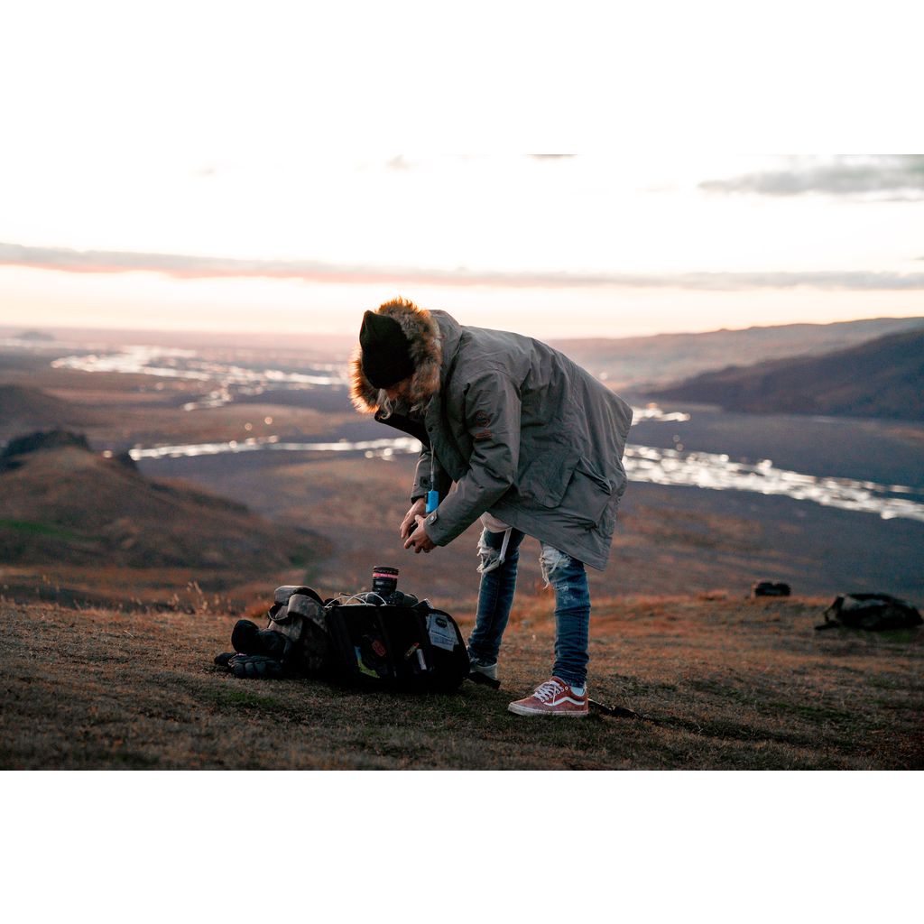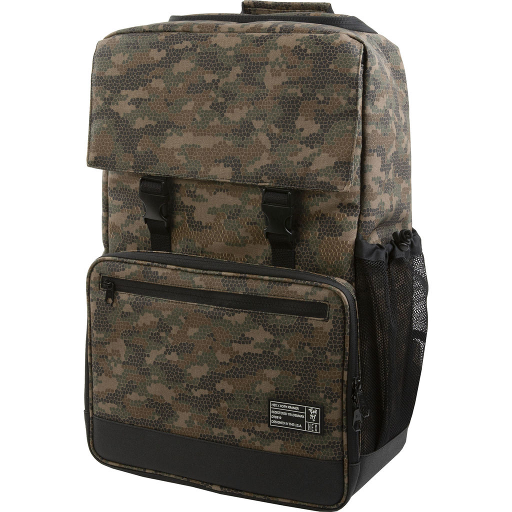 HEX collaborated with Rory Kramer, a well known videographer, to create the perfect Cinema Camera Backpack. Rory is known for his creative and immersive style of filming and editing. He needed a bag that could carry all his gear so he teamed up with Hex to design it. He primarily needed a backpack that could fit a Canon 1DX with a lens attached. Most bags out there are not deep enough to accommodate this. He also needed a bag that would travel well on his long days of terrain trekking. Rory has scoliosis, so designing a system that implemented additional lumbar support was key. The weight is shifted from your shoulders and back to your hips and legs, which are much larger and more stable muscle groups. Rory also wanted multiple access zones for his various needs, laptop storage, and plenty of extra gear pockets. This camera bag has a geo camo print, making it as stylish as it is functional.