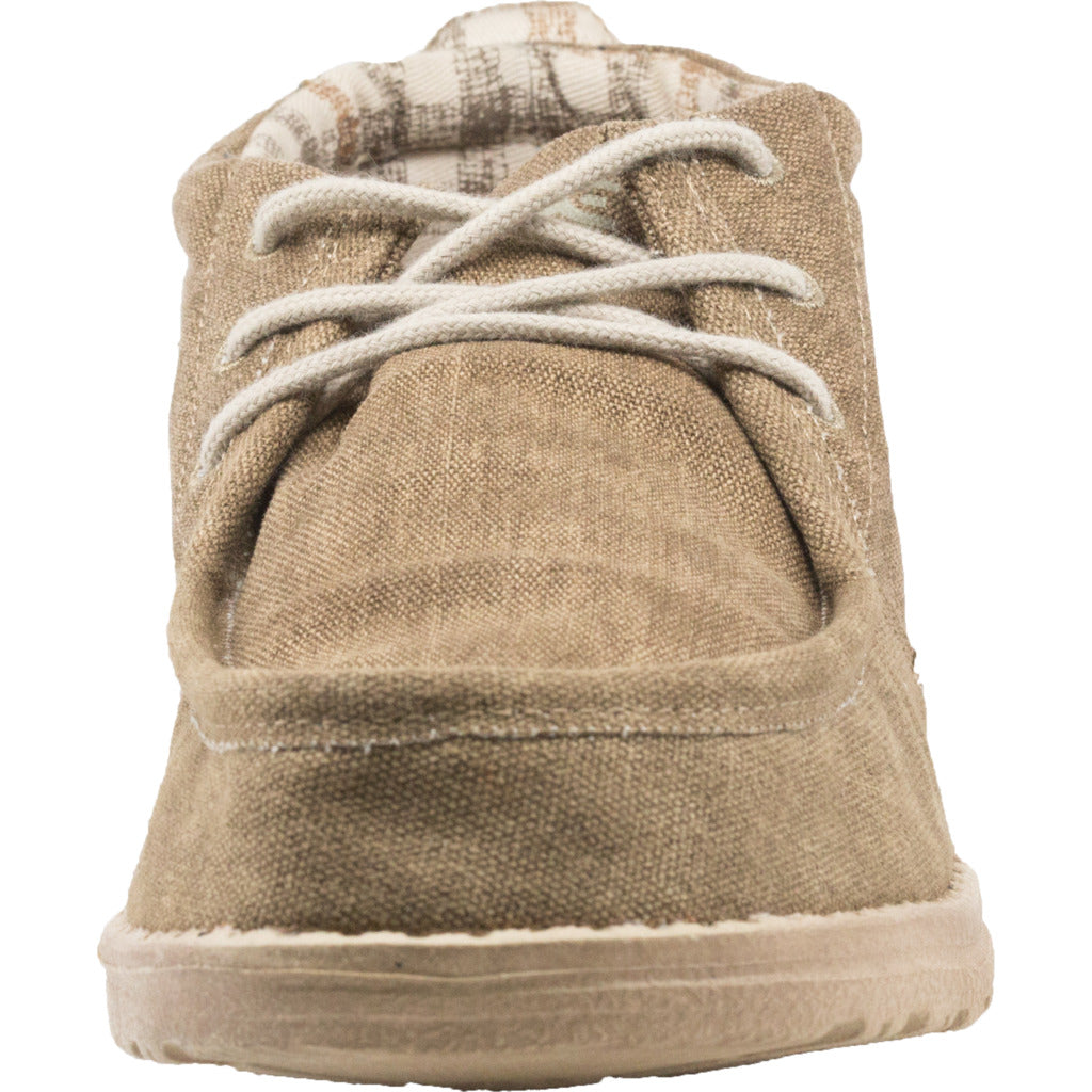 The Hey Dude Nut Conrad Canvas Shoes are based on the popular Wally Shoe design. Constructed with durable canvas and combined with HD's Flex & Fold sole system makes these shoes light and comfortable for year round wear. The Conrad is a chukka-style, adding that much needed ankle support. The front of the shoe allows for total circulation of your toe area, making these shoes comfortable for all day wear. The heel pocket is anatomically correct, creating a feel of custom orthotics. The cotton lining fibers keeps your feet warm and comfortable the whole day.