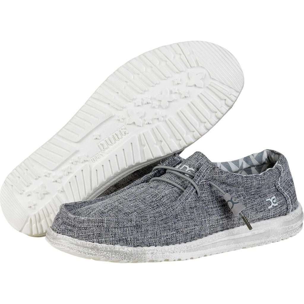 Holding the title of HD Shoes' Bestseller, the Iron Linen Wally Shoe is designed to be your favorite shoe for all occasions. A variety of durable materials allow this shoe to be worn year-round. The Wally's comfortable, chukka-style shape combined with HD's Flex & Fold sole system make this one of the lightest and most comfortable shoes on the market. Get the perfect blend of comfort and laid back style with the Wally Linen Shoe from Hey Dude.