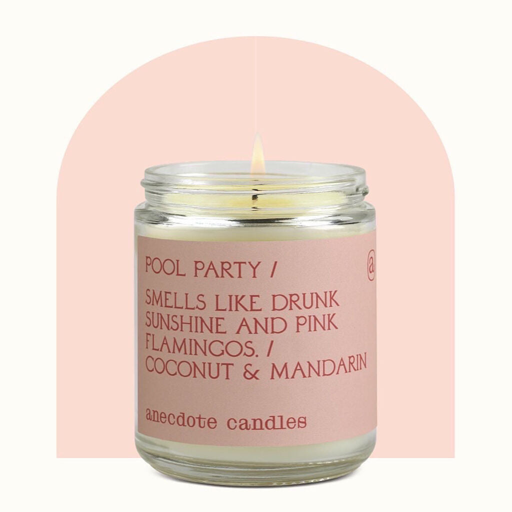 Make a splash with this delightful fragrance. Mandarin, coconut, and lemon encourage you to have some fun in the sun, while calming notes of apple blossom, freesia, and vanilla orchid help you unwind. Summer has arrived. All Anecdote Candles are hand-poured with natural ingredients with no additives, dyes, or preservatives. The coconut-soy wax blend, cotton core wicks, and premium phthalate-free fragrance oils create a clean burn and powerful scent throw.